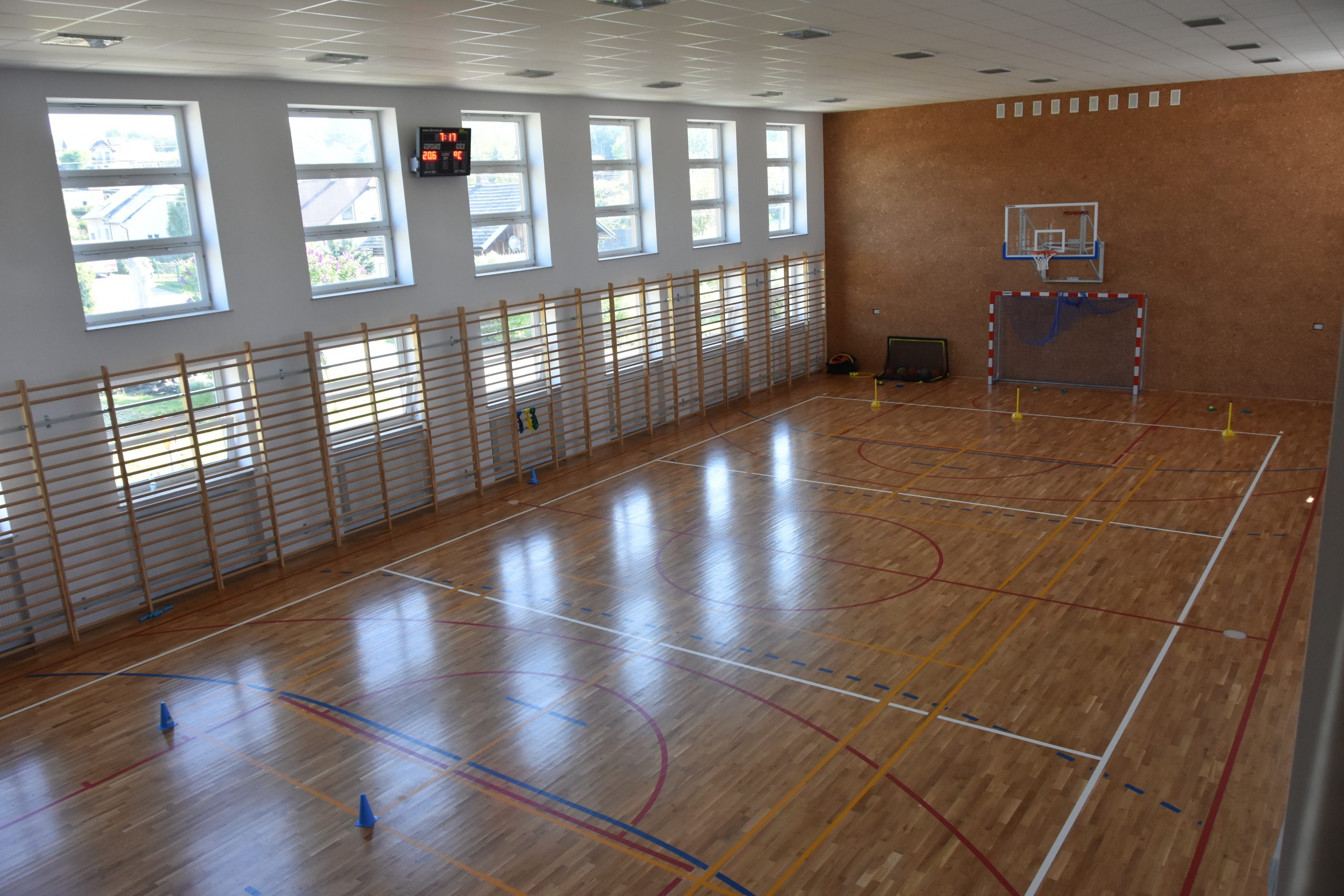 Zakres prowadzonych prac obejmował budowę sali gimnastycznej o pow. 294 m², szatnie, zaplecza sanitarne z prysznicami, a także pomieszczenie dla nauczyciela WF, magazyn sprzętu sportowego, widownię na I piętrze, zagospodarowanie terenu, wyposażenie urządzeń i sprzętu sportowego. W łączniku zamontowano platformę pionową z przeznaczeniem dla osób niepełnosprawnych. Zapewni to pełną dostępność pomieszczeń szkolnych, dla osób niepełnosprawnych.