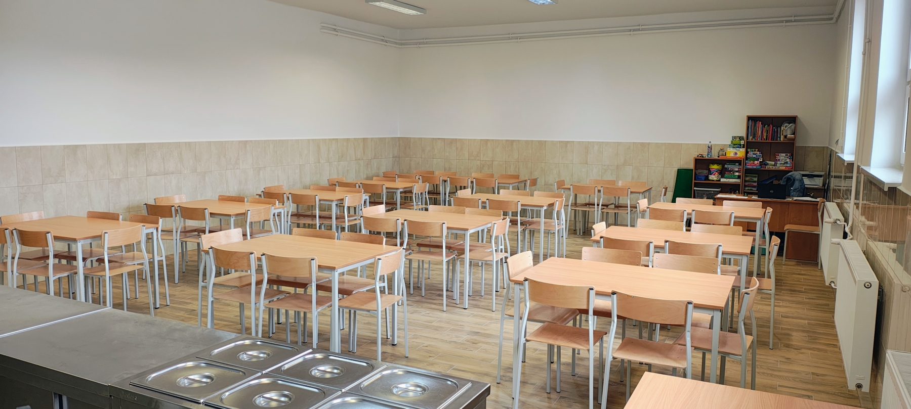 W ramach projektu termomodernizacyjnego w kuchni i stołówce (oraz całej szkole) zamontowana została nowa trzyszybowa stolarka okienna.