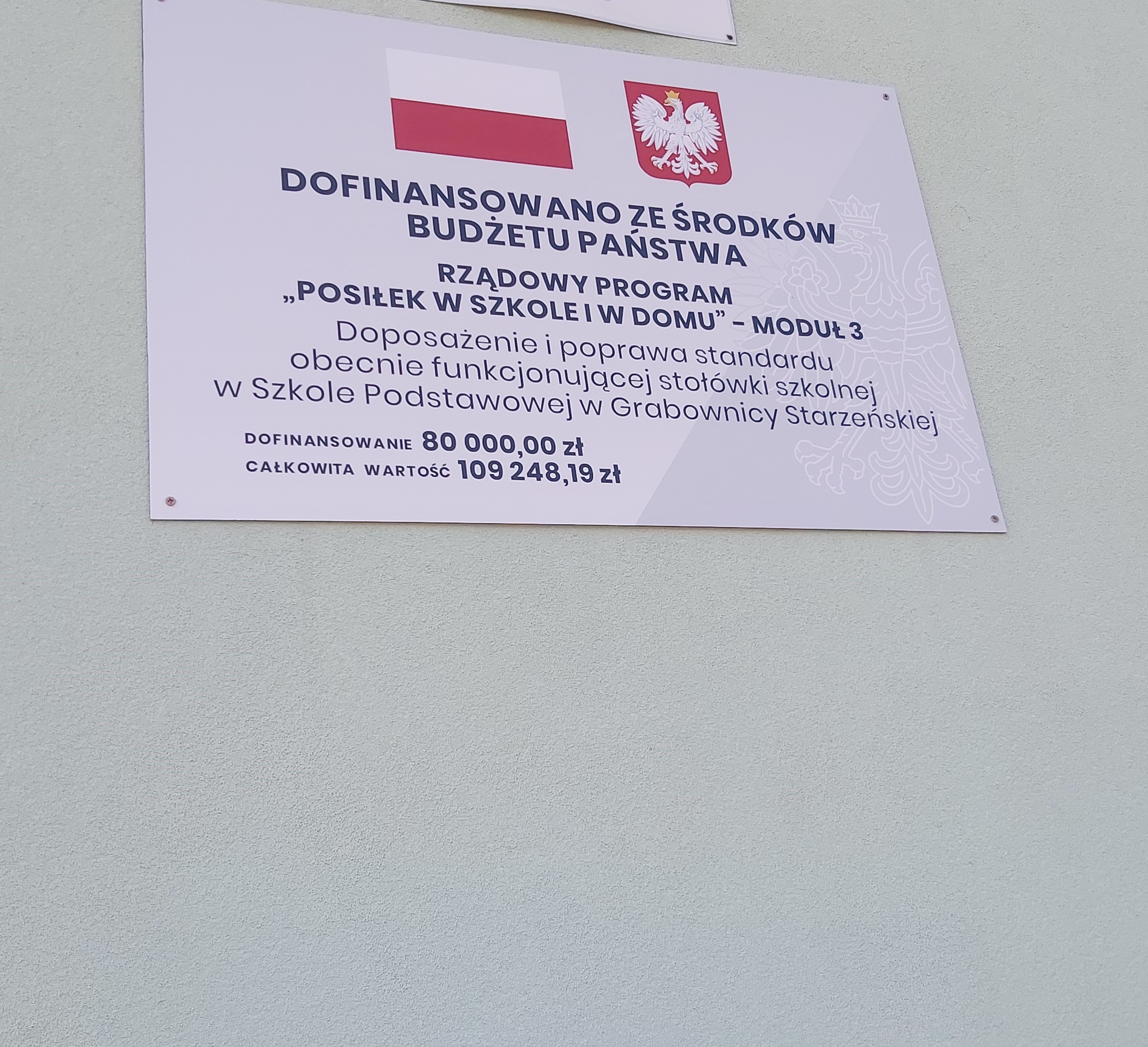 Od połowy września 2024 roku w Szkole Podstawowej w Grabownicy Starzeńskiej funkcjonuje nowa stołówka i doposażona szkolna kuchnia, która przygotowuje posiłki dla blisko 200 uczniów tej szkoły.