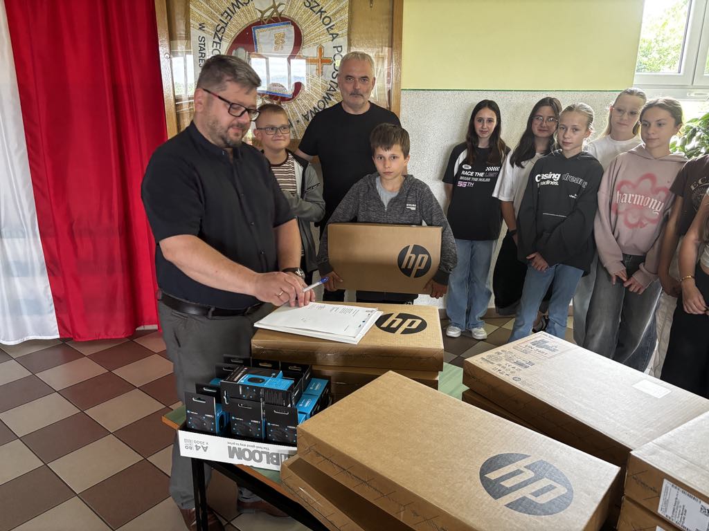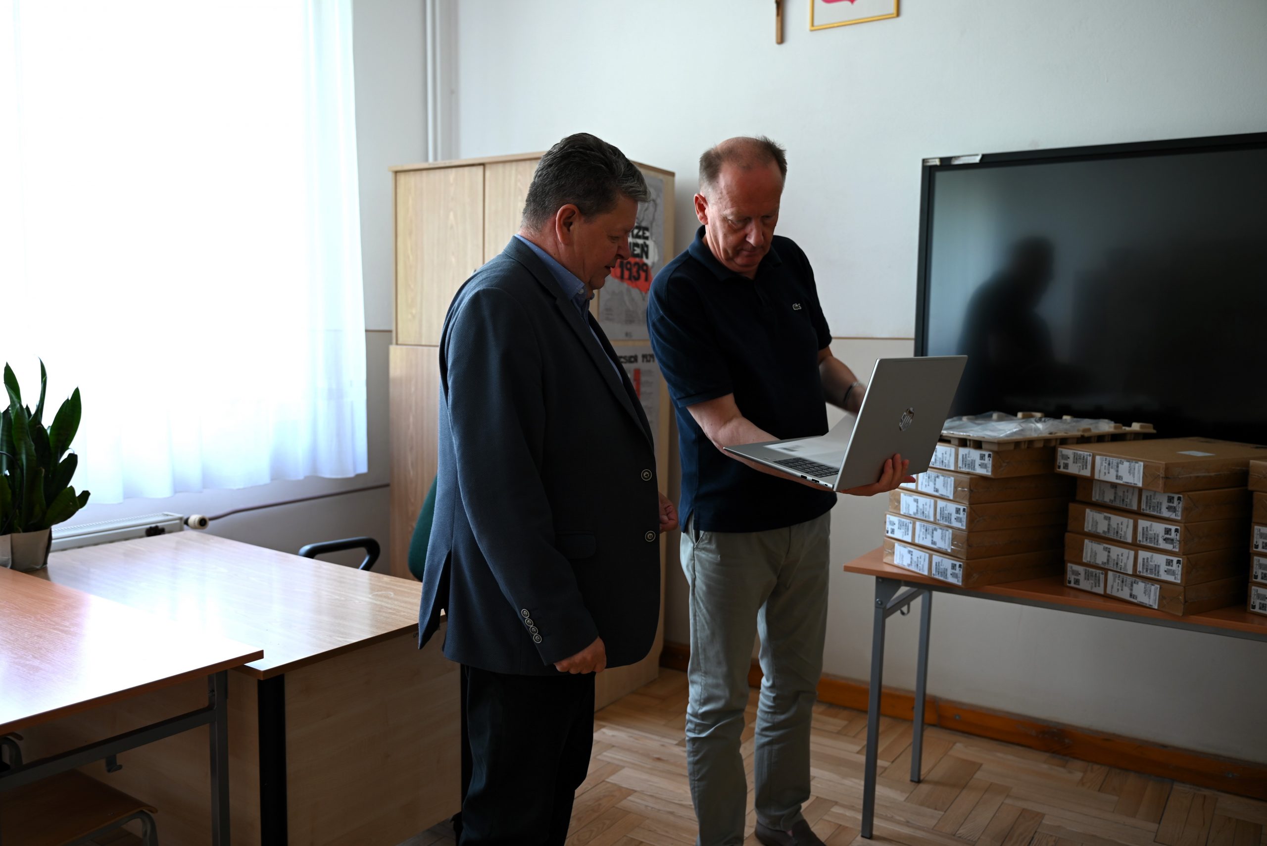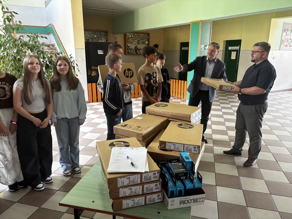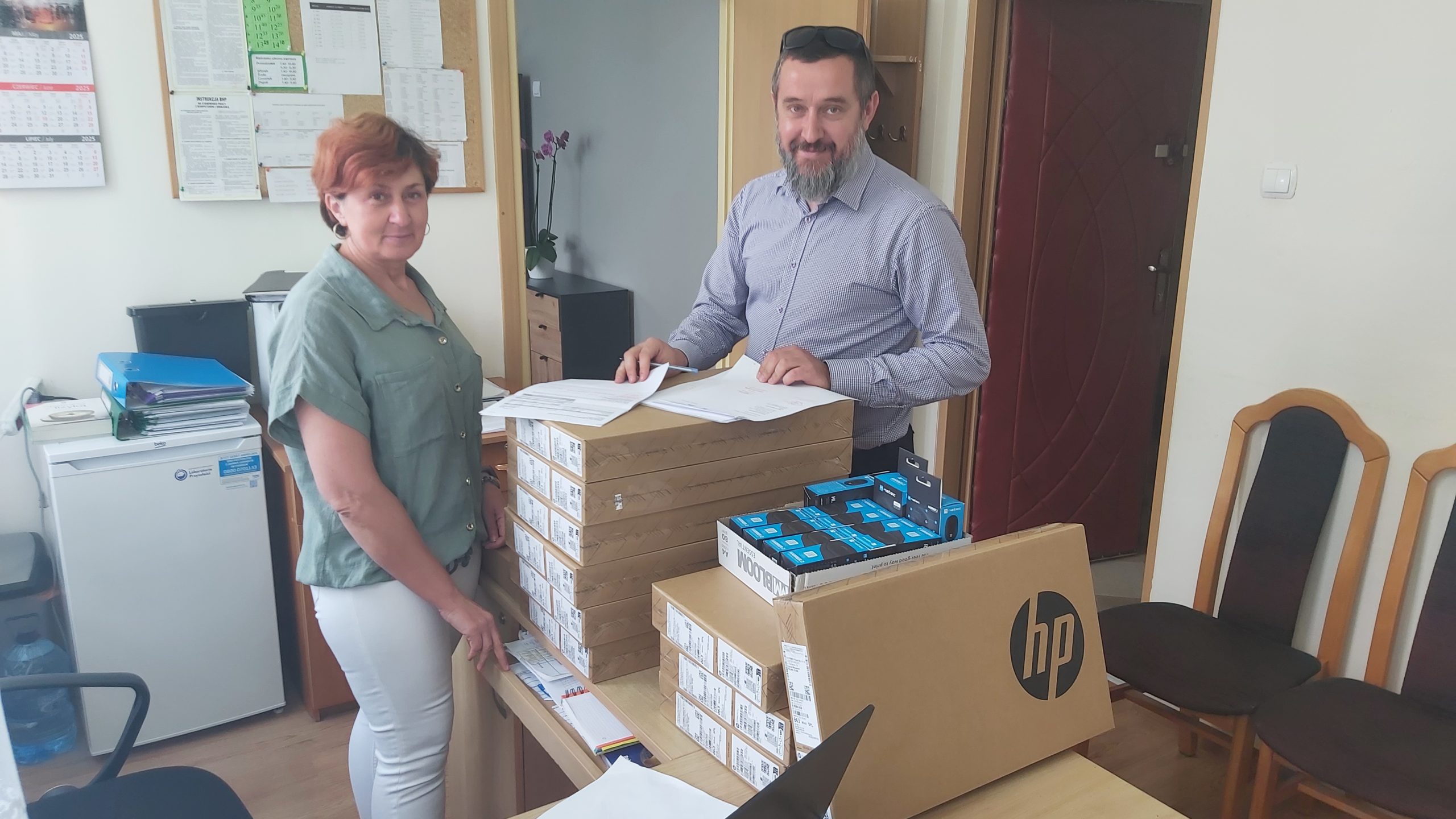 W ubiegłym tygodniu do wszystkich szkół podstawowych w gminie Brzozów dostarczony został wyłoniony w drodze przetargu sprzęt komputerowy w ilości 145 laptopów za kwotę 367 814,77 zł. Oficjalnego przekazania sprzętu w Szkole Podstawoej Nr 1 w Brzozowie w imieniu Burmistrza Brzozowa dokonał Sekretarz gminy Brzozów Pan Waldemar Och. Przekazany sprzęt komputerowy uzupełni braki w szkolnych pracowniach lub pozwoli na całkowita wymianę starych komputerów.