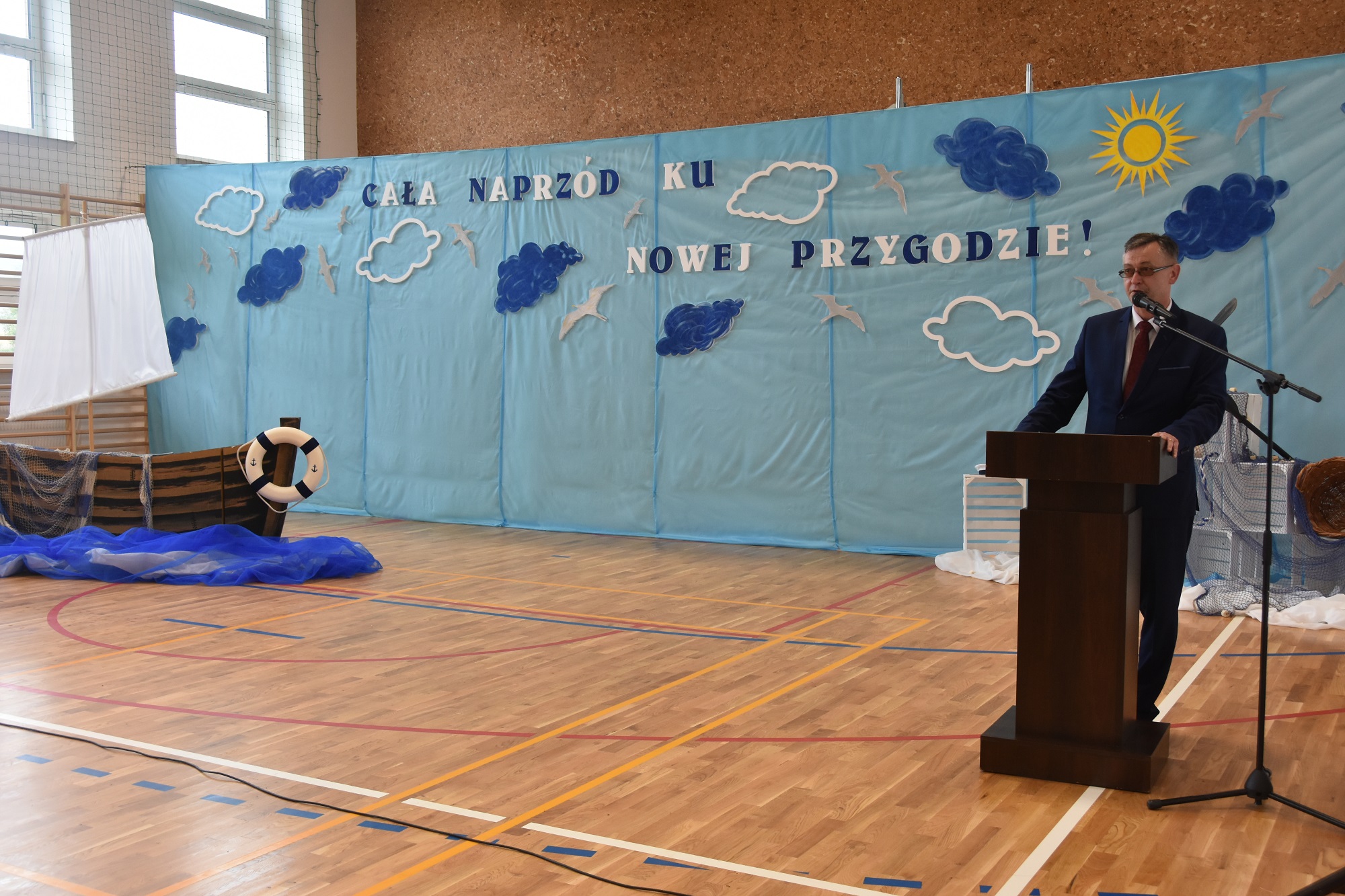 Cieszę się, że dzieci mają bezpieczne i dobre miejsce do nauki i uprawiania sportu. Przekonany jestem, że sala ta będzie tętniła życiem każdego dnia i będzie przestrzenią, w którym każdy młody człowiek będzie mógł rozwijać swoje sportowe zainteresowania, ucząc się przy tym zdrowej rywalizacji, zasad fair play, współpracy w zespole oraz szacunku do kolegów, koleżanek i wychowawców. Ufam też, że będzie miejscem ważnych wydarzeń sportowych i kulturalnych, integrujących całą społeczność Zmiennicy. Dziękuję za wyrozumiałość i wsparcie ze strony dyrekcji, grona pedagogicznego oraz rodziców w czasie budowy sali gimnastycznej – mówił burmistrz.