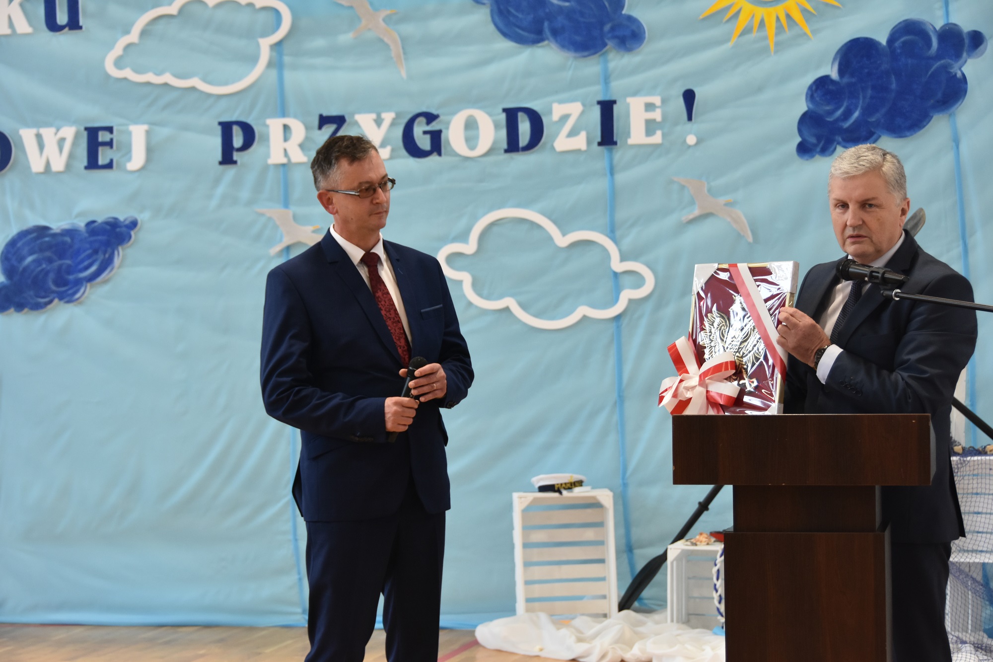 Powiatowo – Gminną inaugurację roku szkolnego rozpoczęła msza św., a po niej uczestnicy uroczystości przeszli do szkoły na część oficjalną. Tam po przywitaniu przez dyrektora szkoły Jana Piotrowskiego, głos zabrali zaproszeni goście. Gratulowali pięknej, pełnowymiarowej sali gimnastycznej oraz życzyli nauczycielom i uczniom dobrego roku szkolnego, wytrwałości i sukcesów. Ciepłe słowa skierował również burmistrz Brzozowa Szymon Stapiński.