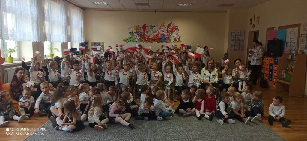Tego dnia przedszkole wzięło udział w akcji Ministerstwa Edukacji i Nauki „Szkoła do hymnu”. Podobnie jak w ubiegłych latach wszystkie oddziały odśpiewały „Mazurka Dąbrowskiego” o symbolicznej godzinie 11:11. Akcja ma na celu rozwijać świadomość narodową i kształcić postawę patriotyczną naszych przedszkolaków.