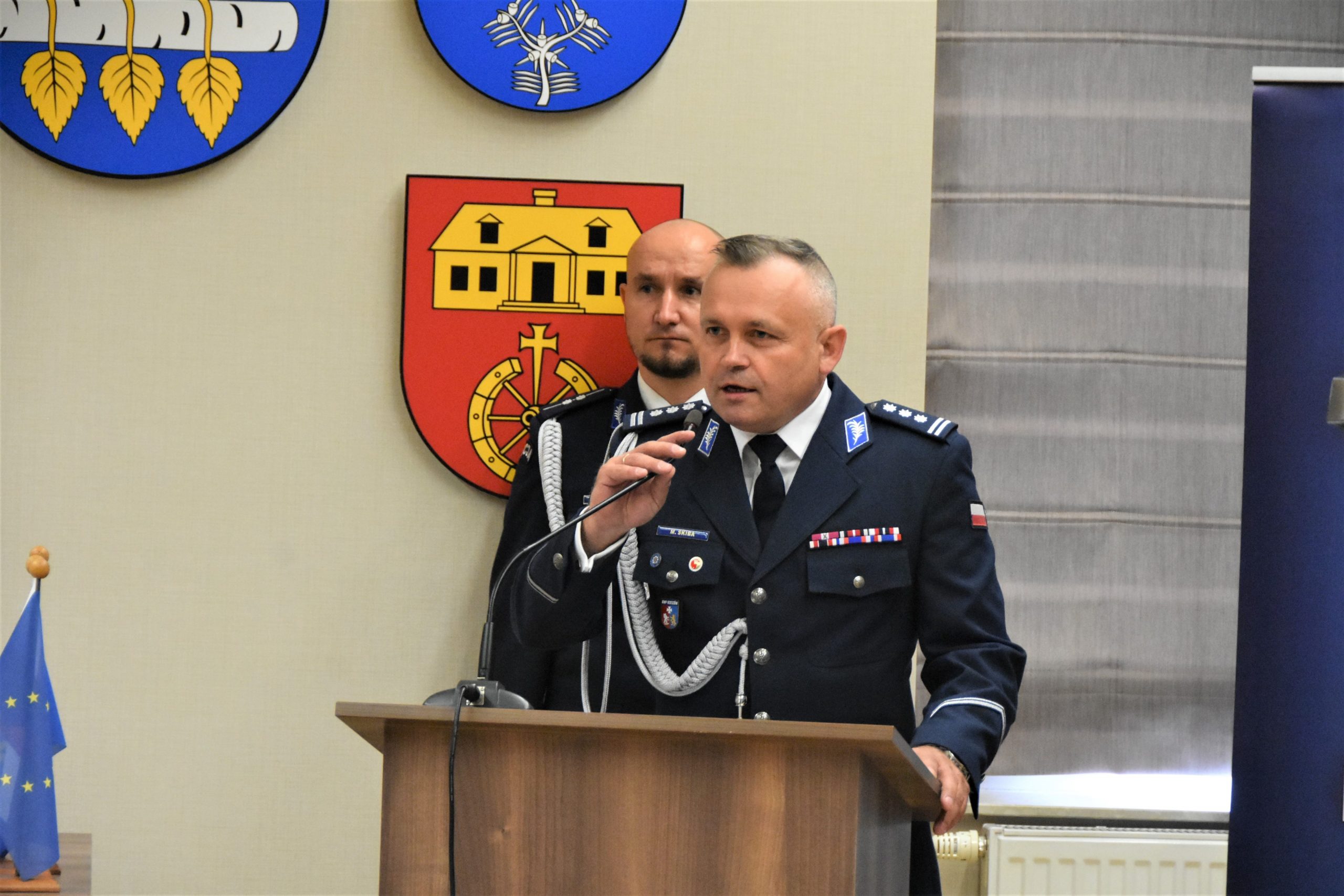 Po nabożeństwie uczestnicy wydarzenia udali się do sali konferencyjnej Starostwa Powiatowego w Brzozowie, gdzie odbyło się uroczyste ogłoszenie awansów zawodowych dla kilkudziesięciu funkcjonariuszy i funkcjonariuszek Komendy Powiatowej Policji w Brzozowie oraz przemowy zaproszonych gości.