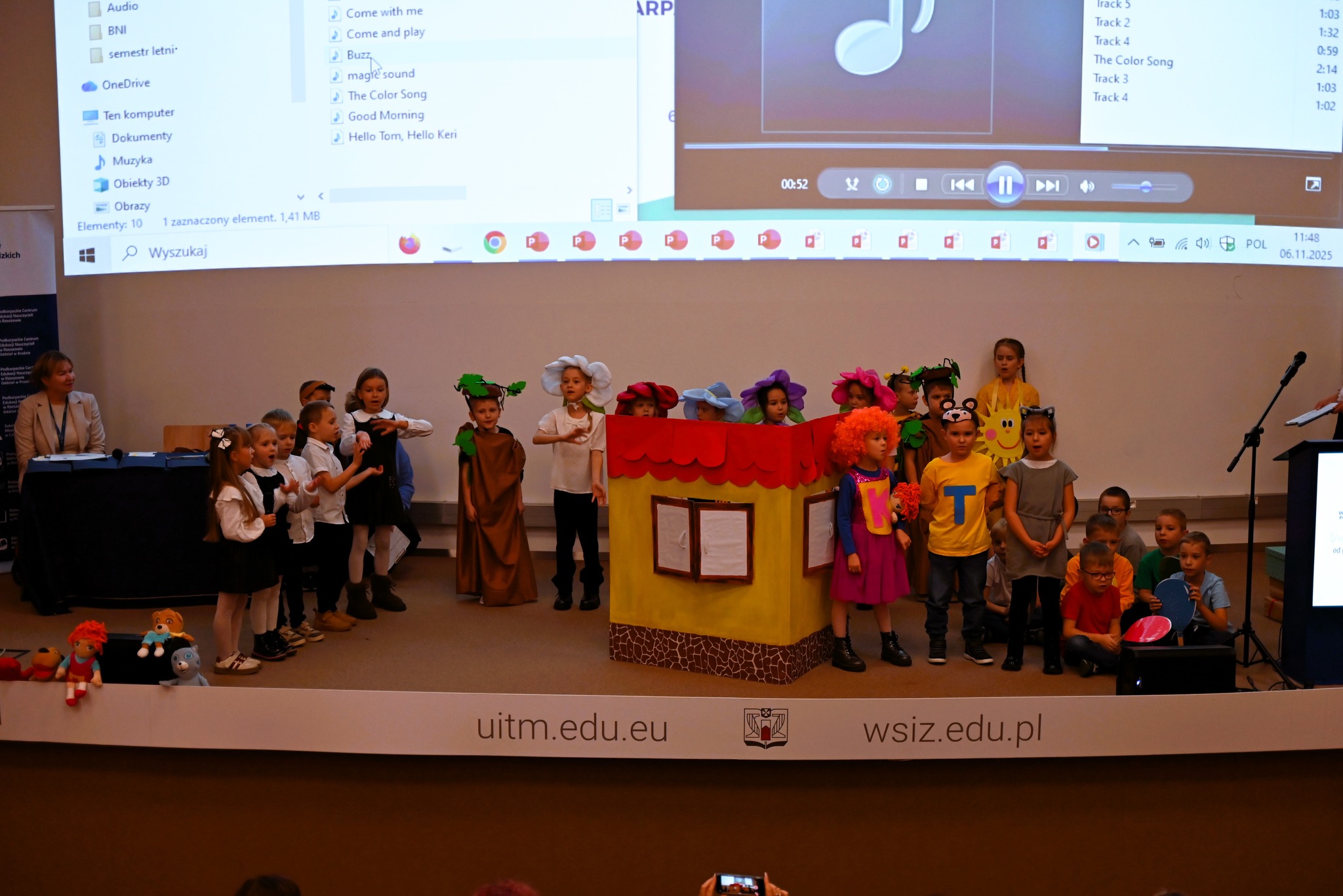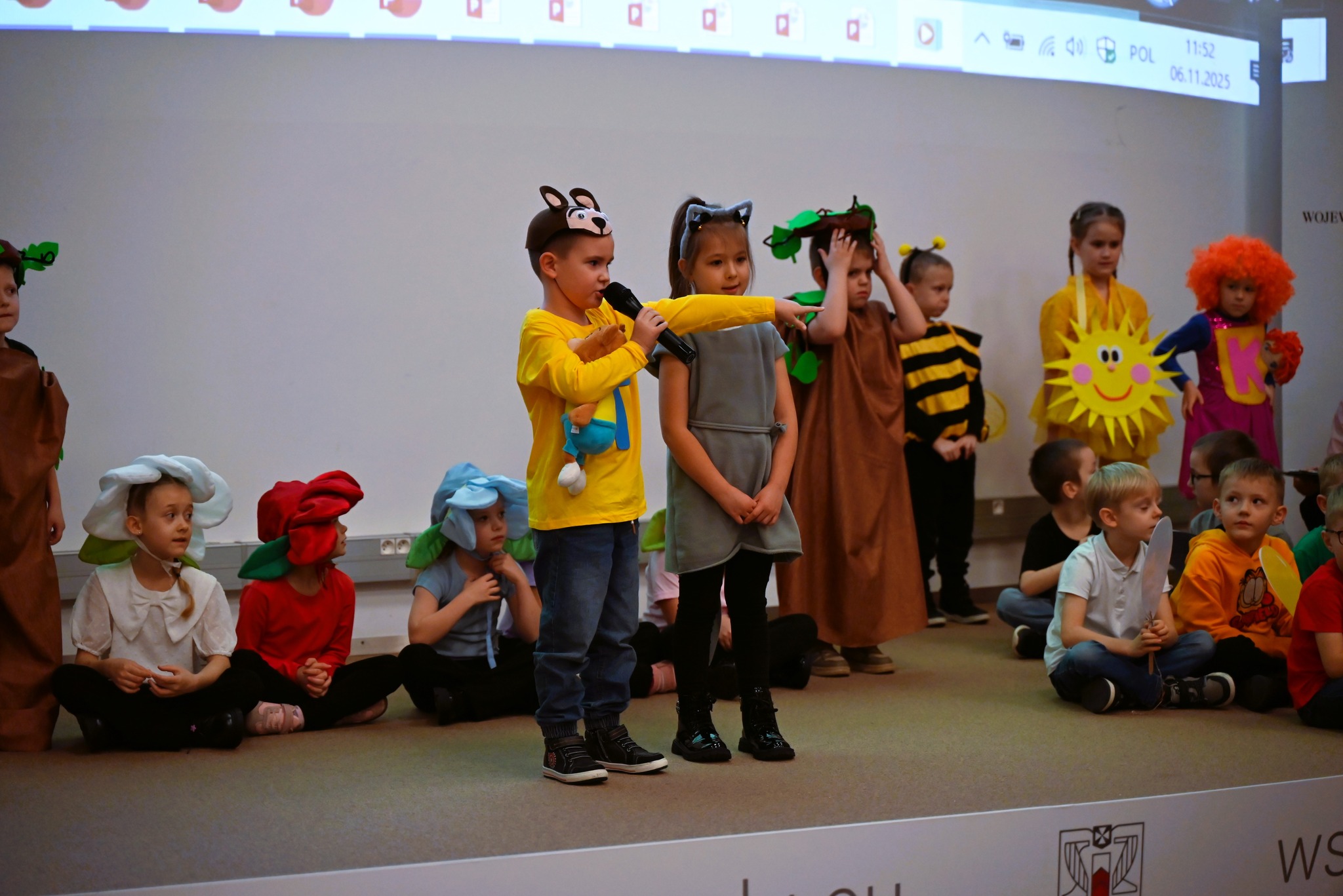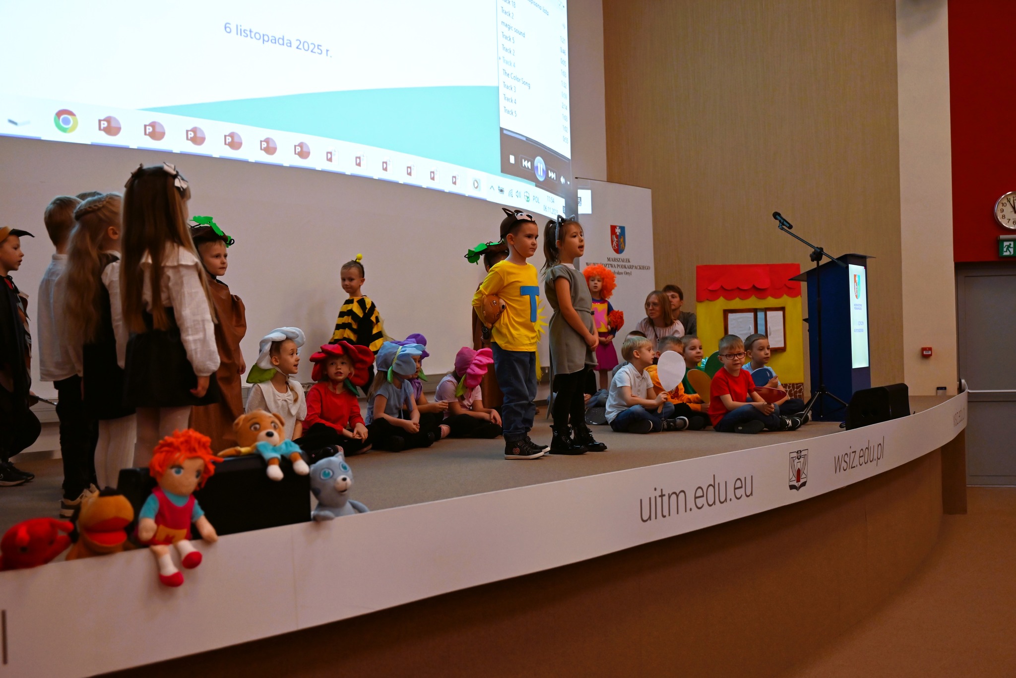 6 listopada na zaproszenie Marszałka Województwa Podkarpackiego, Władysława Ortyla, przedszkolaki z grupy „Odkrywców” wraz ze swoimi paniami: Joanną Pietryką, Anną Bober, Anną Barańską, Agatą Kuś i Natalią Miksiewicz – mamą naszej Blanki, wyruszyły do Kielnarowej, aby wziąć udział w podsumowaniu trzyletniego pilotażu „Wsparcia dwujęzyczności w podkarpackich przedszkolach”. Był to dla wszystkich uczestników wyjazdu dzień pełen emocji, wzruszeń oraz radości z osiągniętych sukcesów.