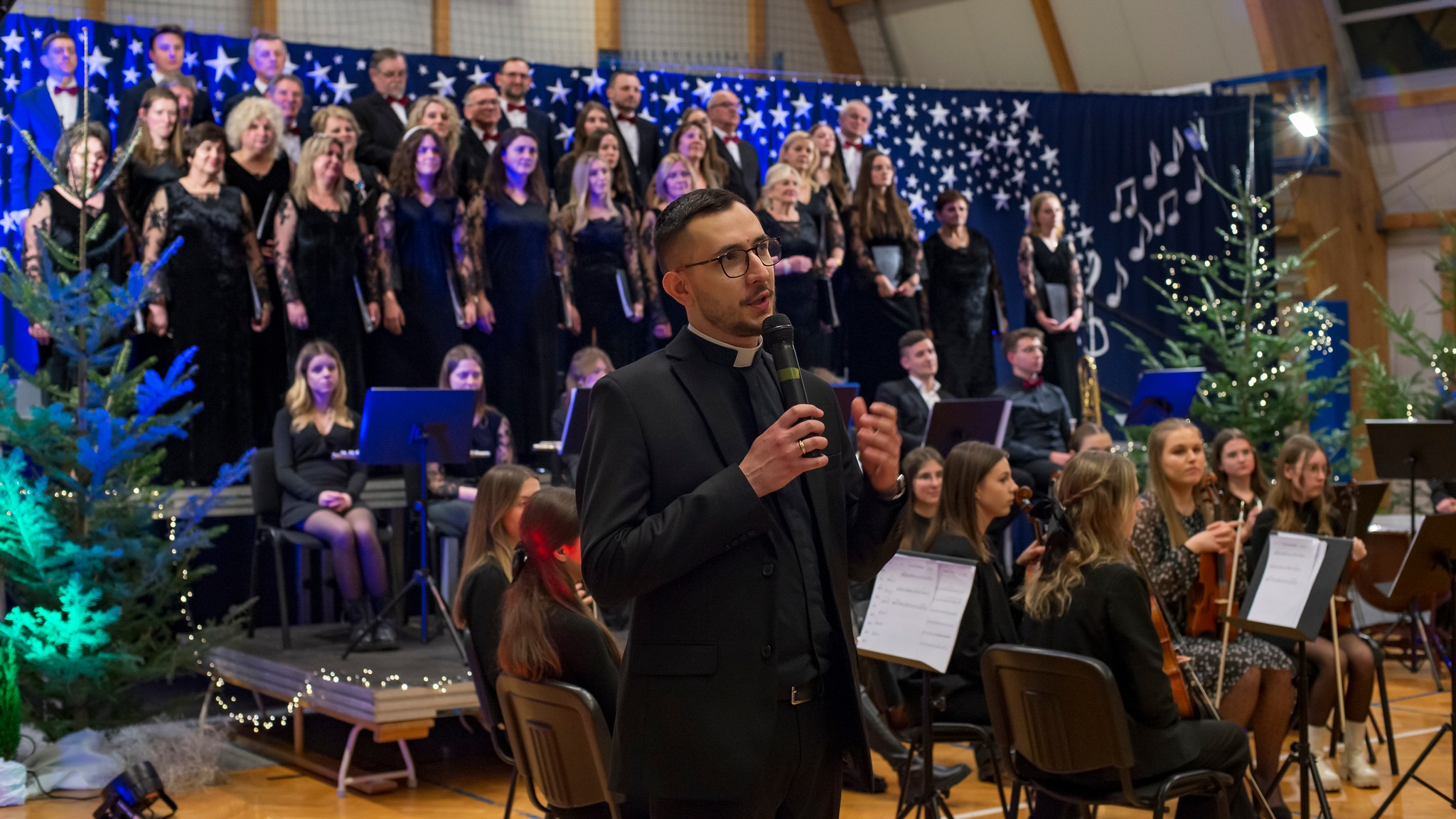 W pięknej i klimatycznej scenerii mieszkańcy Humnisk i gminy Brzozów mogli wrócić do Betlejem dzięki Chórowi i Orkiestrze Kameralnej Sursum Corda. Zespół powstał w 2016 roku w Radymnie. Dzisiaj zrzesza osoby śpiewające i grające z okolic Jarosławia, Przemyśla, Przeworska, Brzozowa i Sanoka. Są to ludzie, których pasją jest muzyka. Tak spędzają swój wolny czas i dzielą się talentem z innymi. Podczas koncertu można było wysłuchać kilkunastu pięknych polskich kolęd. Nie zabrakło również momentów na osobistą refleksję przy słowach poezji. Chór i Orkiestra Kameralna Sursum Corda zostały przygotowane przez założyciela i jednocześnie dyrygenta Księdza Łukasza Kramarza.