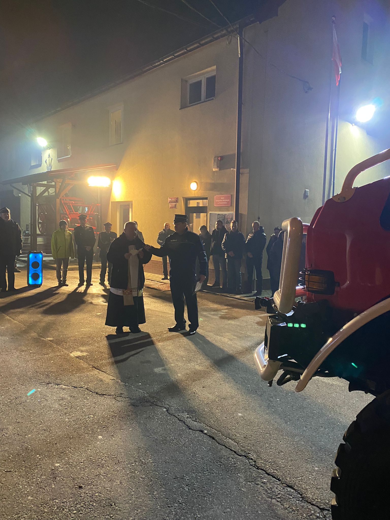 Podczas pisania tego posta dotarła do nas jedna rzecz: nowy pojazd na zdjęciu został zasłonięty przez tłum druhów i druhen, i niechcący wyszło ciekawe przesłanie… W straży na pierwszym planie powinni być LUDZIE, bo to oni tworzą historię, a sprzęt jest w tle.