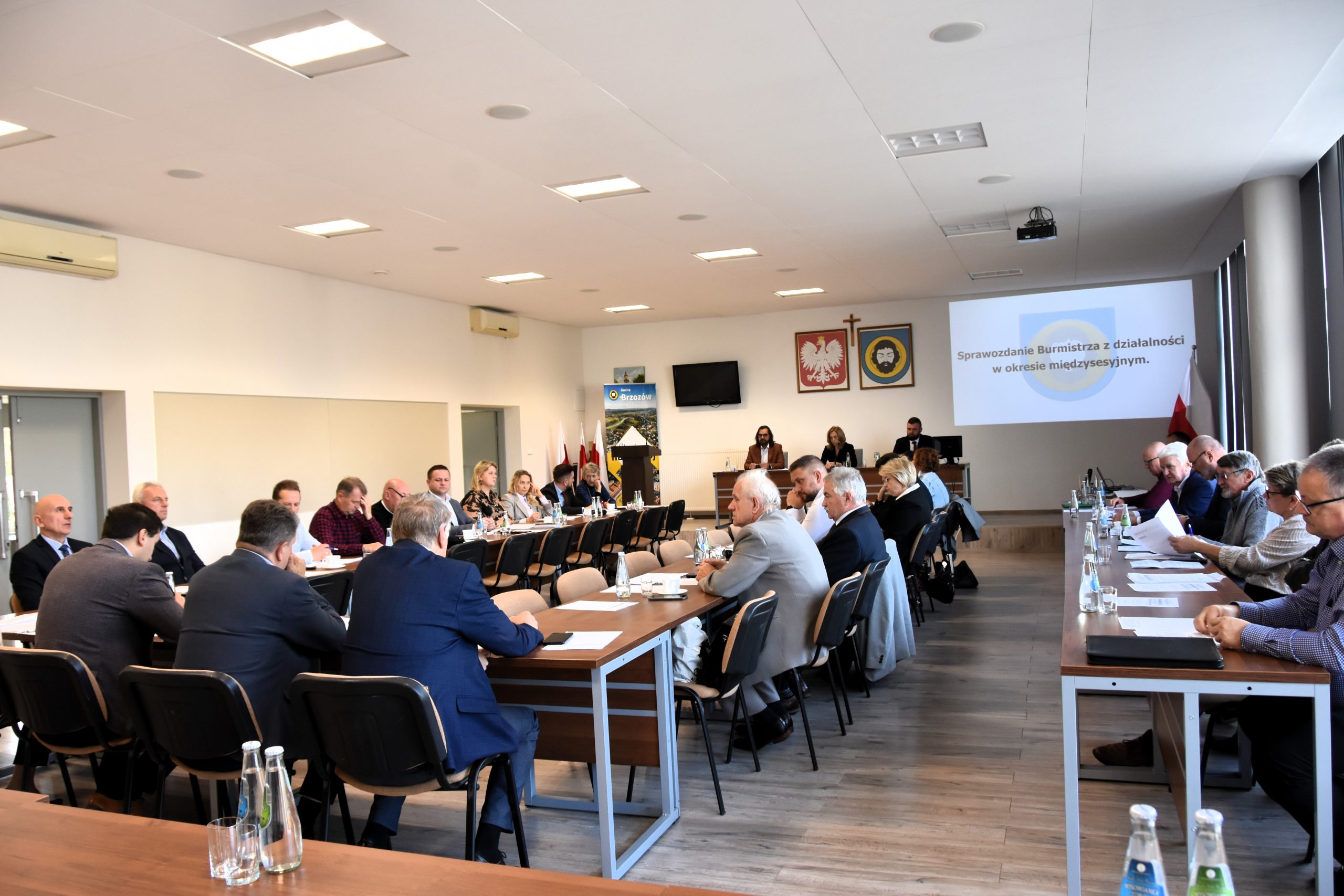 Po otwarciu i stwierdzeniu prawomocności obrad, Radni wysłuchali sprawozdania z realizacji uchwał z poprzedniej sesji oraz sprawozdania Burmistrza Brzozowa z działalności w okresie międzysesyjnym, które przedstawił Burmistrz Brzozowa Szymon Stapiński. W sesji uczestniczyli również zastępca Burmistrza Mariusz Bieńczak, Sekretarz Gminy Brzozów Waldemar Och, Skarbnik Anna Konieczna, naczelnicy, a także sołtysi oraz przewodniczący zarządów osiedli.