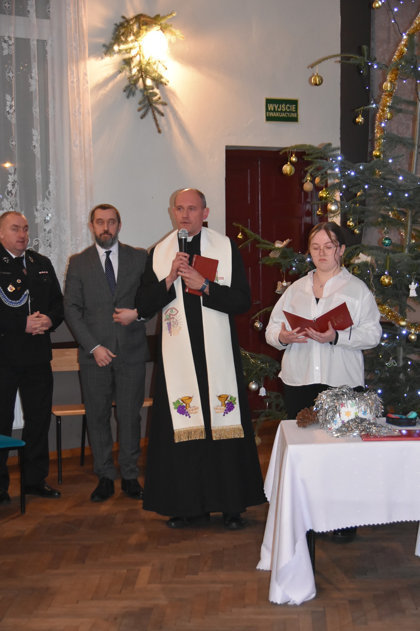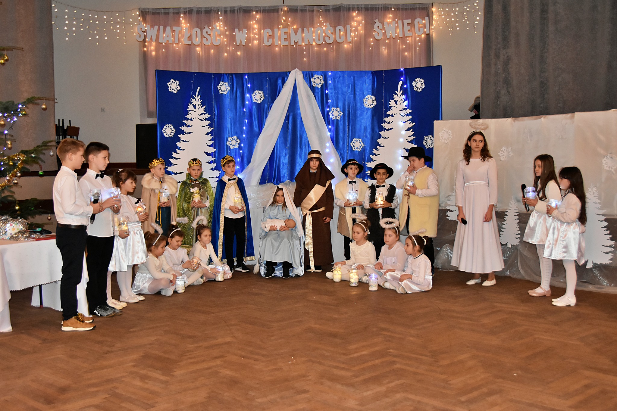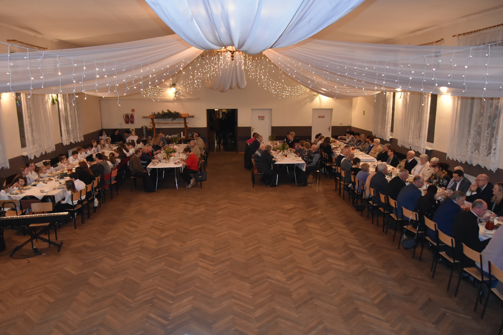 Było połamanie się opłatkiem, kolędowanie oraz wspólne rozmowy. Uroczystość była nie tylko okazją do świętowania, ale również wyrazem troski i szacunku dla seniorów, dając im możliwość spędzenia wyjątkowego wieczoru w otoczeniu bliskich, sąsiadów przy świątecznym występie uczniów ze Szkoły Podstawowej w Górkach. Piękne stroje i scenografia wprowadziły zebranych w świąteczną atmosferę.  Brawa dla młodych artystów oraz nauczycieli przygotowujących do występu. Bardzo dziękujemy również wszystkim, którzy zaangażowali się w przygotowanie tego spotkania.