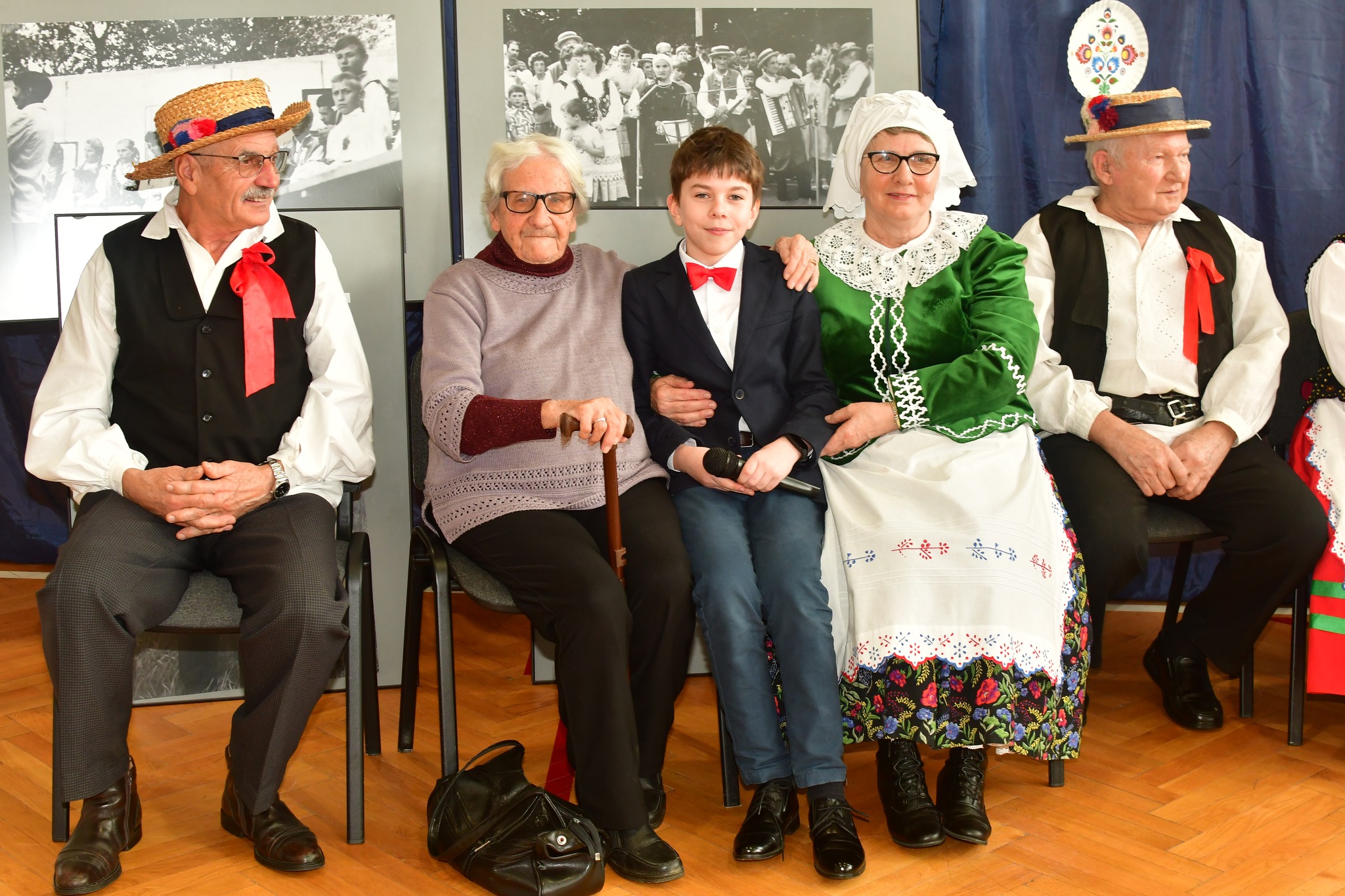 Spotkanie zainicjowane zostało okrągłym jubileuszem 60-lecia zespołu, powiązanym z wystawą fotograficzną łączącą przeszłość z teraźniejszością. Mieliśmy więc możliwość obejrzenia przepięknych zdjęć (pochodzących z prywatnego archiwum Pani Zofii Olejko i Pana Marcina Michańczyka), pokazujących wycinek historii Grabownicy, sylwetki ciekawych ludzi, nierzadko społeczników i pasjonatów, plenery, rekwizyty i stroje będące świadectwem dziedzictwa kulturowego naszego regionu. W trakcie tej niecodziennej lekcji uczniowie wysłuchali prelekcji Pani Zofii Olejko, emerytowanej nauczycielki naszej szkoły, która podzieliła się wspomnieniami dotyczącymi losów swojej rodziny, specyfiką pracy dydaktyczno-wychowawczej, pomysłem założenia kapeli i zespołu, mozolnym gromadzeniem materiałów, trudnościami, ale i radością płynącą z realizacji przedsięwzięcia, a także dokonaniami i sukcesami.