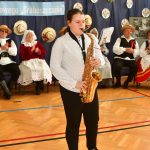 Ponadto uczniowie dowiedzieli się wielu ciekawych rzeczy, nierzadko już im całkowicie obcych, o tradycjach i obrzędach kultywowanych niegdyś w naszej wsi, a także poznali charakterystyczne cechy strojów noszonych dawniej przez ich pradziadków. Za tak niestandardowe zajęcia młodzież podziękowała zaproszonym gościom koncertem, dzieląc się tym samym swoimi pasjami, zdolnościami i emocjami. Mieliśmy więc możliwość obejrzenia i wysłuchania występów muzycznych w wykonaniu Julii Świątek, Nicoli Maliwieckiej i Dominika Oleniacza, a całość uroczystości poprowadziła Julia Barszczowska i Anna Wojdanowska.
