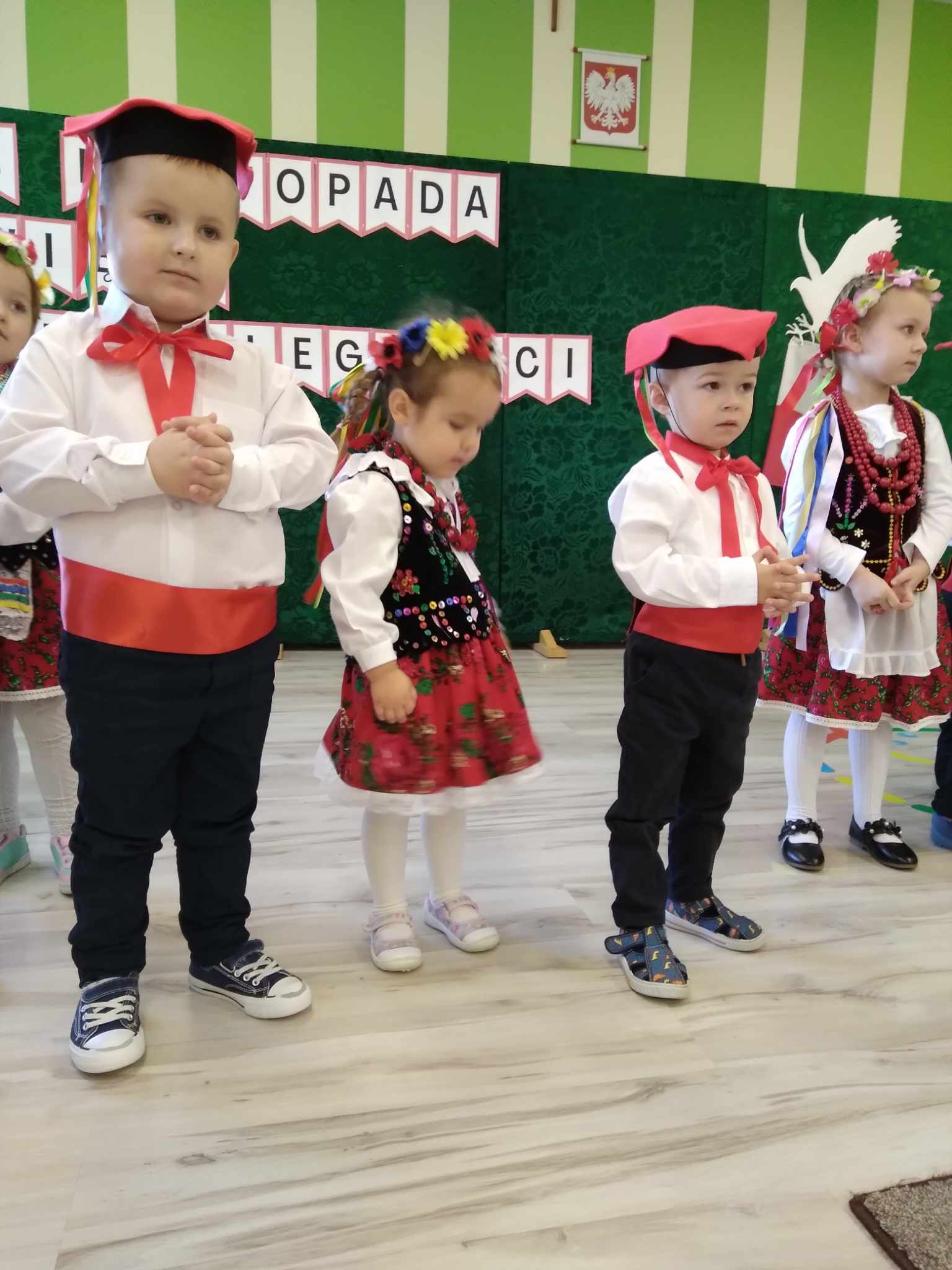 Gościliśmy w tym dniu Radę Rodziców i Państwa Radnych: Aleksandrę Haudek, Kazimierza Tympalskiego i Kazimierza Zajdla. Swoją obecnością zaszczycił nas także sołtys naszej wsi Pan Dominik Arendarczyk. Dzieci przedstawiły montaż słowno – muzyczny: były piosenki o ojczyźnie, tańce narodowe i wiersze o tematyce patriotycznej, a na koniec najstarsza grupa dzieci – 5 latki, zaprosiły wszystkich zebranych do odśpiewania hymnu narodowego. Dzieci otrzymały od przybyłych gości prezenty, w tym także słodkości. Dziękujemy!