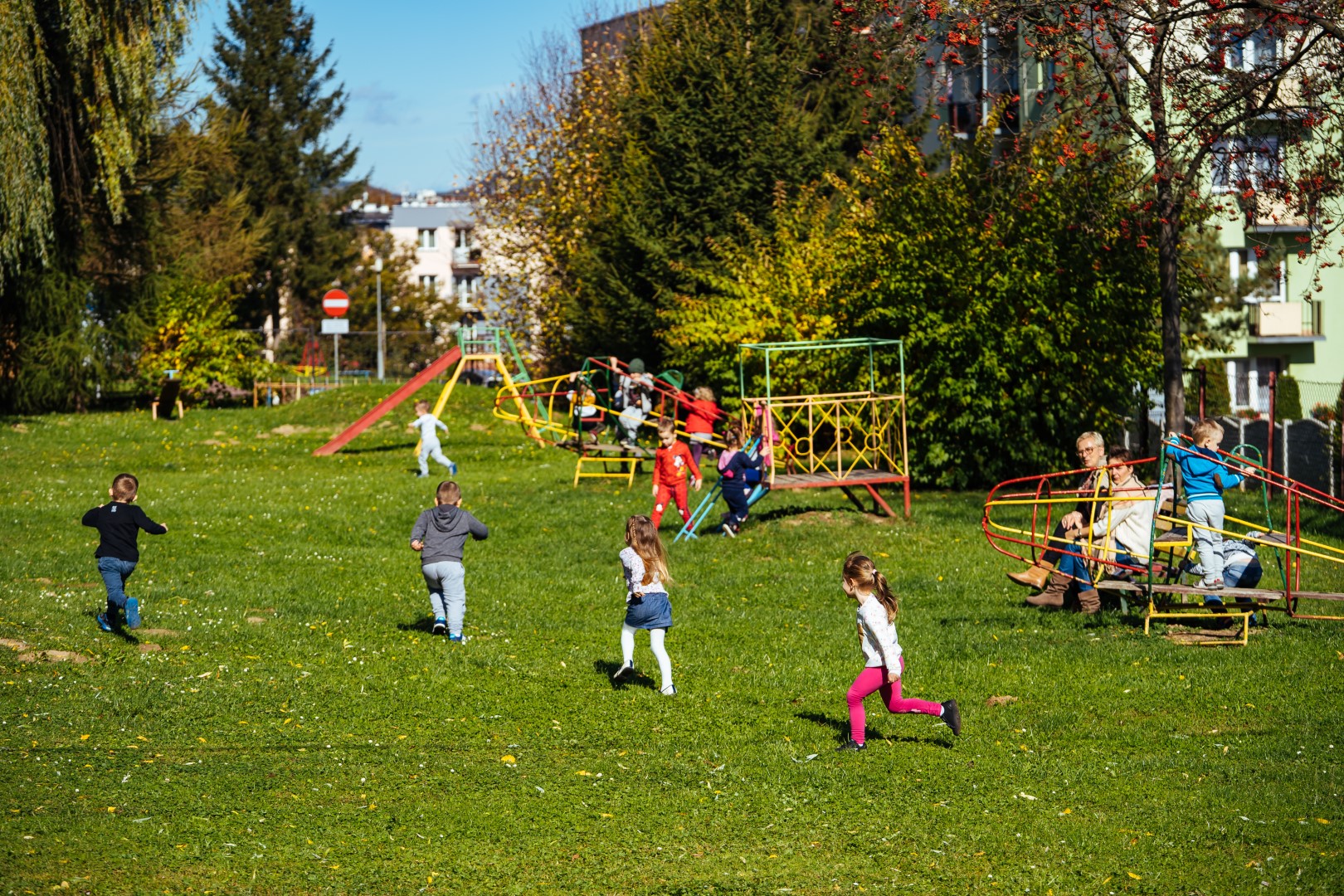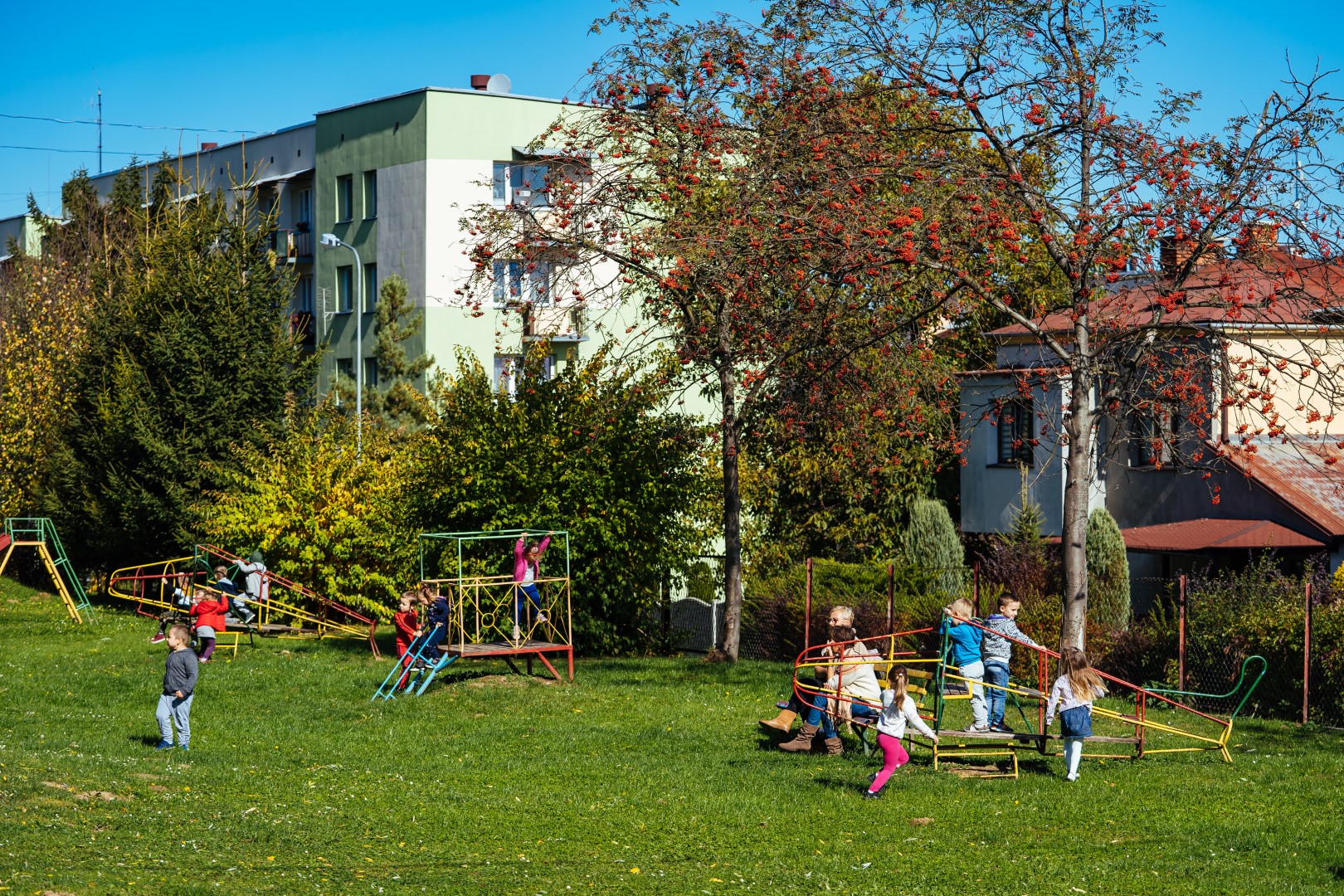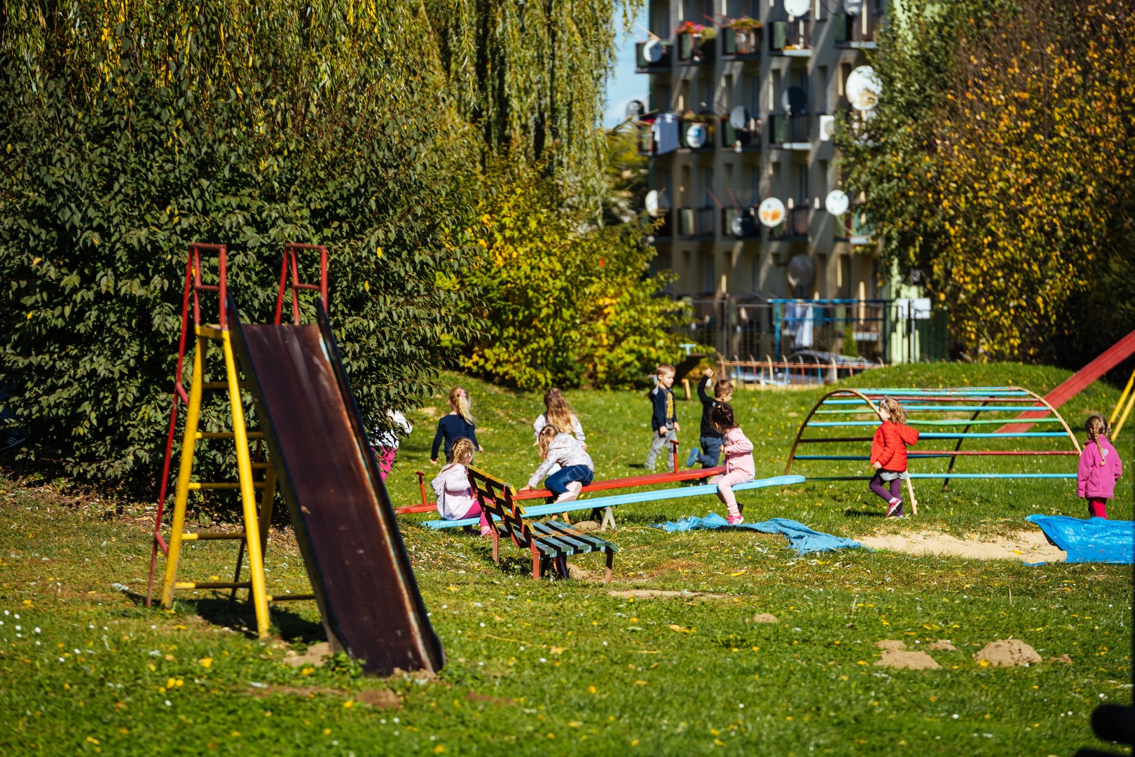 Przedszkole posiada bardzo duży, zielony plac zabaw.