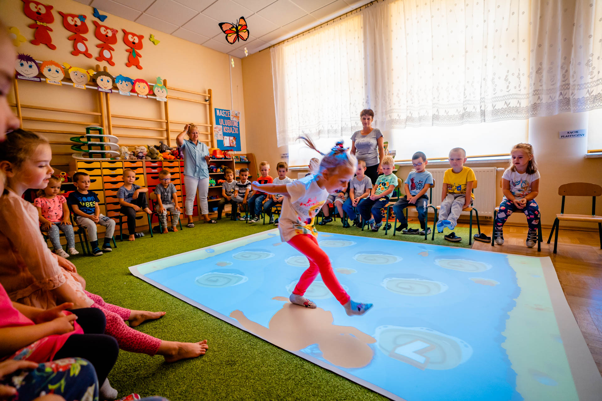 Pracują z nami wykwalifikowani specjaliści, którzy prowadzą zajęcia z dziećmi wymagającymi wsparcia w codziennym funkcjonowaniu. W jednej z sal została zamontowana podłoga interaktywna, która ma pozytywny wpływ na rozwój naszych podopiecznych – łączy zabawę ze zdobywaniem wiedzy i rozwojem funkcji ruchowych, poznawczych oraz emocjonalno-społecznych. Planujemy utworzenie sali integracji sensorycznej, w której odbywać się będą zajęcia rozwijające m.in. funkcje wzrokowe, słuchowe i dotykowe.