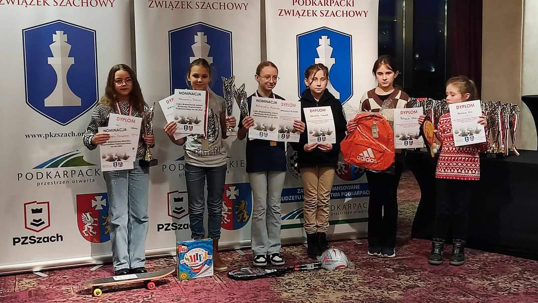 W dniu 16 grudnia 2023 w Rzeszowie do malowniczej sali bankietowej w HOTELU RZESZÓW zjechali się wszyscy najlepsi młodzi szachiści z Województwa Podkarpackiego, aby uczestniczyć w MISTRZOSTWACH WOJEWÓDZTWA PODKARPACKIEGO JUNIORÓW W SZACHACH SZYBKICH na rok 2023. W pięciu z dwunastu grup wiekowych nasz #UKS SP 1 Brzozów reprezentowało 10 szachistów: Milena Owsiana, Karolina Dziadosz, Oliwia Folta, Gabriela Dziadosz, Klara Dmitrowska, Szymon Florek, Szymon Opaliński, Kacper Folta, Nordin Graboń-Hafid i Cyryl Dmitrowski.