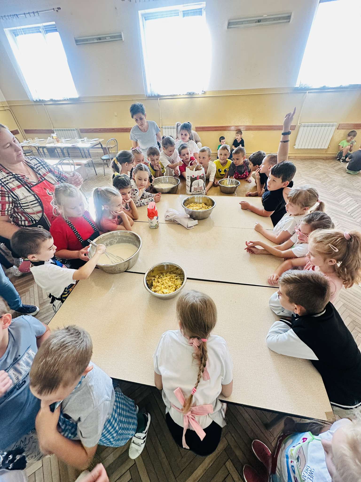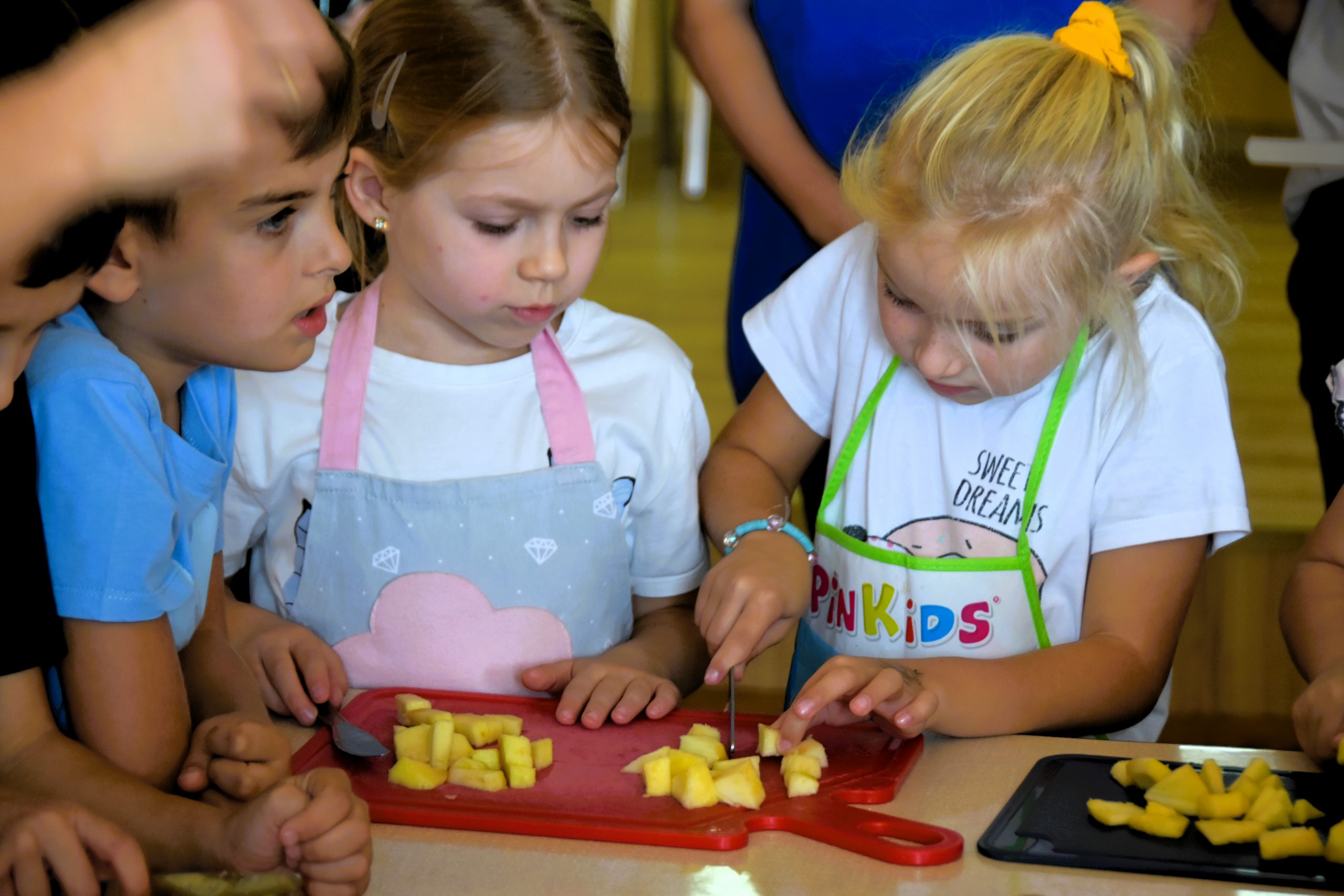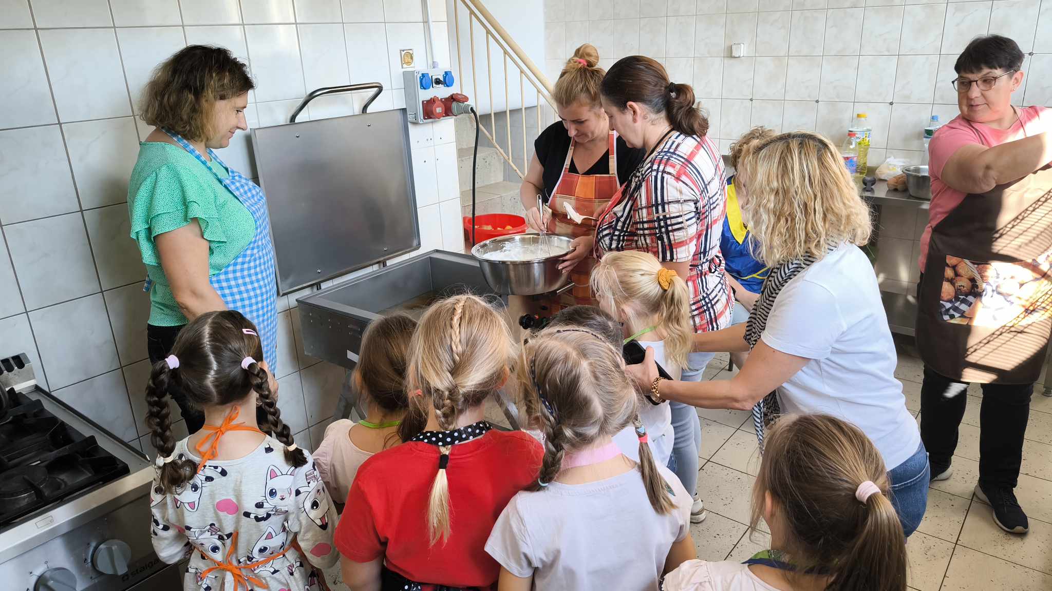 Na dwudniowych warsztatach dużą aktywnością i zaangażowaniem wykazały się dzieci, które dzielne dotrzymywały kroku Paniom z KGW w Starej Wsi, a miłym zakończeniem każdego spotkania była wspólna degustacja przygotowanego dania – racuchów z jabłkami na słodko z dżemem i cukrem pudrem. Największą atrakcją zajęć było smażenie placuszków na ogromnej patelni. Warsztaty okazały się dla uczniów bardzo fajną formą spędzania czasu.