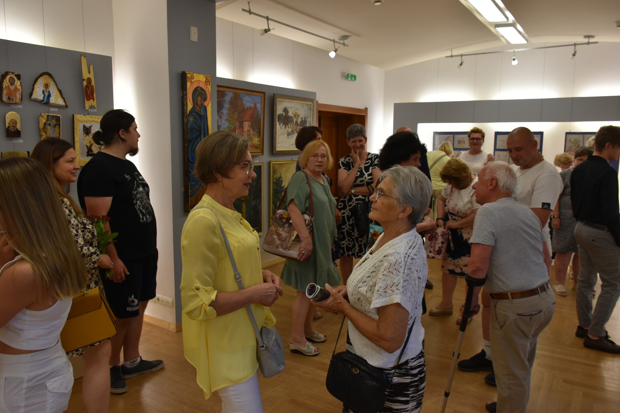 Na ekspozycji, którą będzie można zwiedzać do końca sierpnia, obejrzymy 58 ikon, 20 obrazów olejnych, których autorką jest Alicja Stodolak. Znajdują się tam również 24 grafiki jej Ojca – śp. Jana Stodolaka. Całości dopełniają prace – 24 obrazy – jej córki Elżbiety Stram.