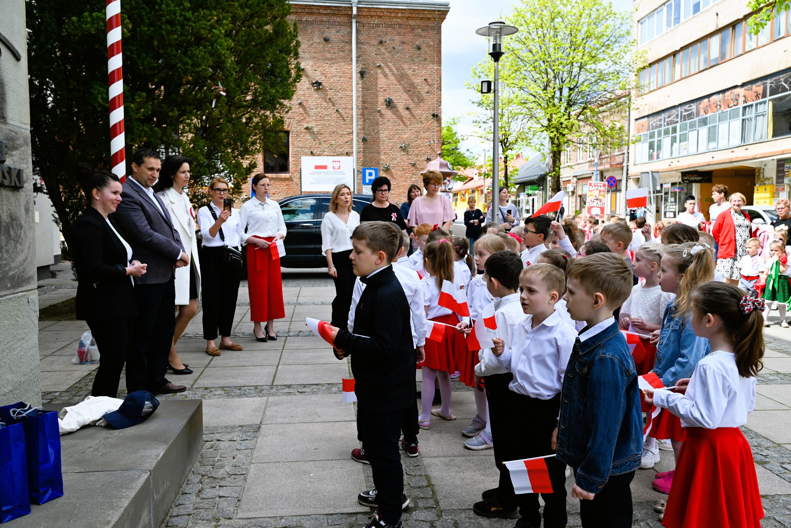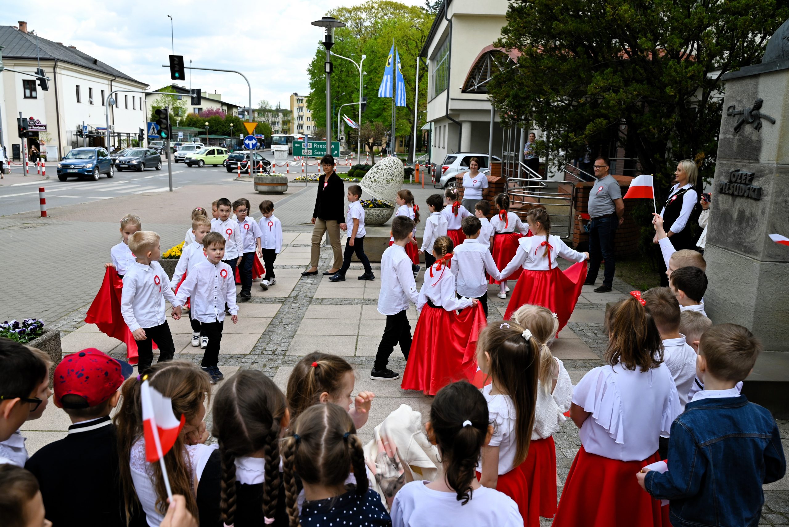 Po uroczystych programach patriotycznych w przedszkolach, dzieci wraz z dyrekcją i nauczycielami przeszły przed pomnik Marszałka Józefa Piłsudskiego. Przedszkolaki odświętnie ubrane z flagami w ręku, odśpiewały Hymn Państwowy, patriotyczne pieśni oraz zatańczyły polskie tańce narodowe.