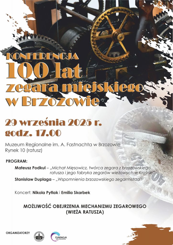 Muzeum Regionalne w Brzozowie zaprasza na konferencję „100 lat zegara miejskiego w Brzozowie”, która odbędzie się w poniedziałek, 29 września br. o godz. 17:00. Szczegóły na plakacie.