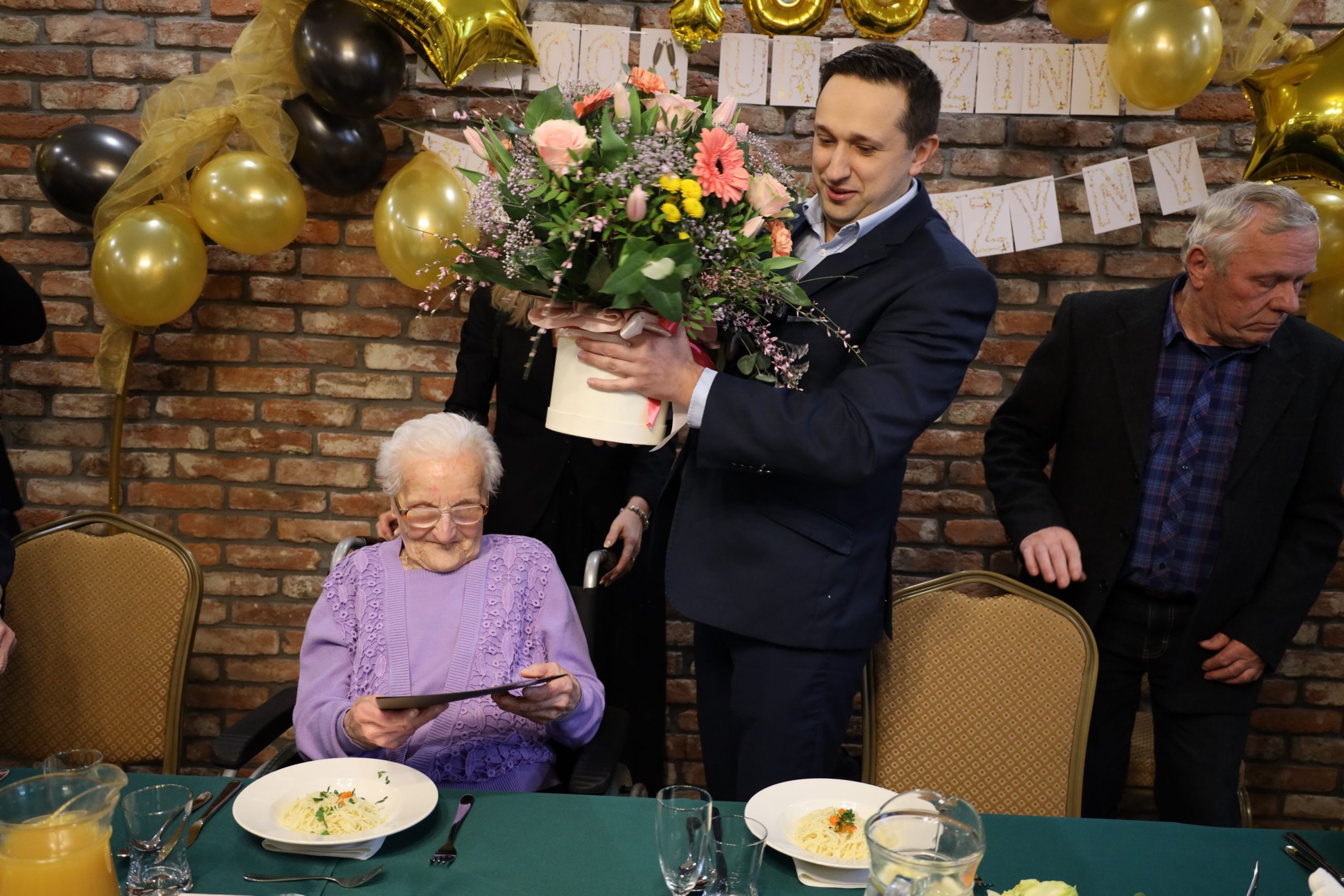 Z tej okazji Jubilatkę odwiedził Burmistrz Brzozowa Szymon Stapiński wraz z Kierownikiem Urzędu Stanu Cywilnego Urszulą Dąbrowską-Huber. Burmistrz złożył Pani Katarzynie życzenia, wręczył okolicznościowy list gratulacyjny oraz bukiet kwiatów. W otoczeniu całej rodziny Jubilatka świętowała swój jubileusz. Gratulujemy tak wyjątkowego Jubileuszu i życzymy samych radosnych dni w gronie życzliwych, troskliwych i najbliższych sercu osób.
