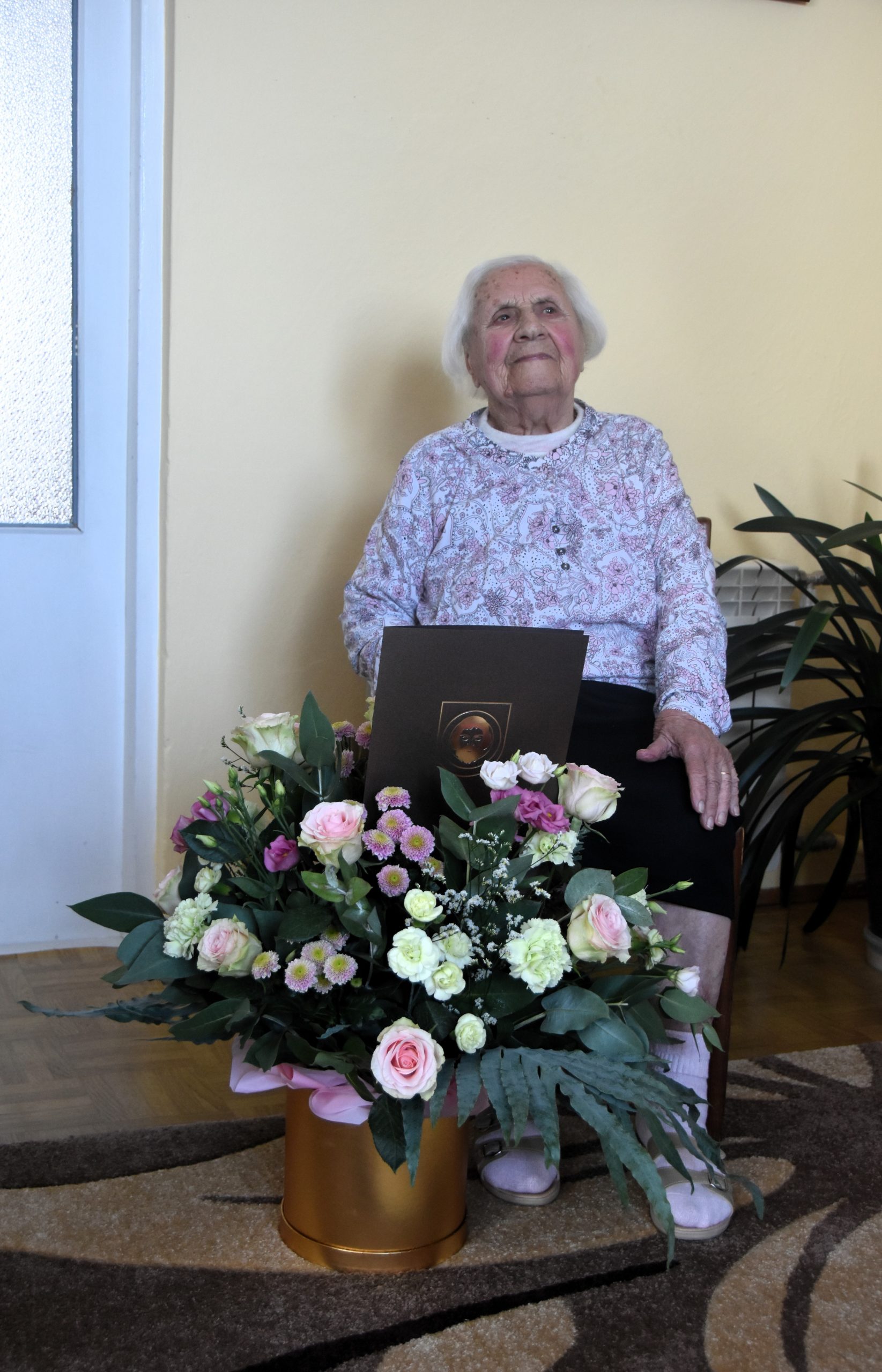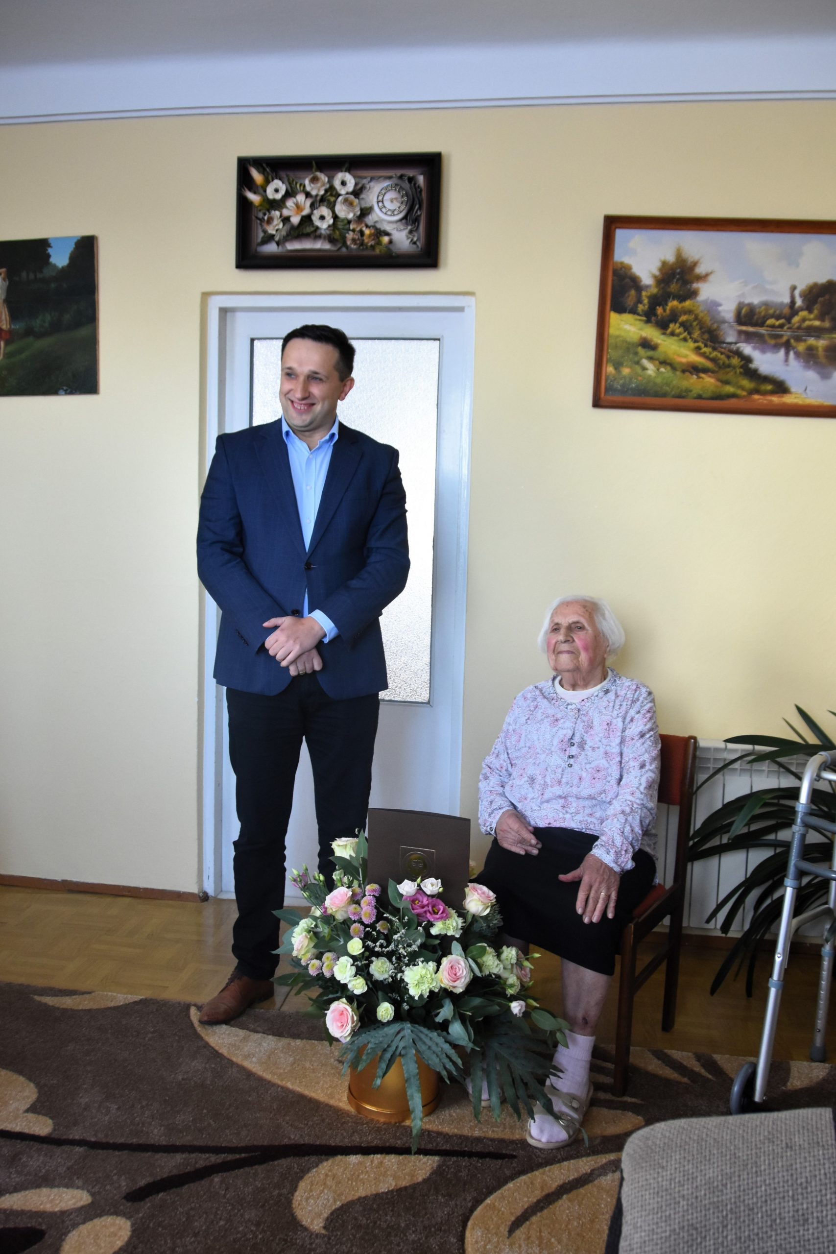 Z tej okazji Jubilatkę odwiedził Burmistrz Brzozowa Szymon Stapiński. Burmistrz złożył Pani Marii życzenia, wręczył okolicznościowy list gratulacyjny oraz bukiet kwiatów. Pani Maria w otoczeniu najbliższych nie kryła wzruszenia oraz wielkiej radości z odwiedzin.