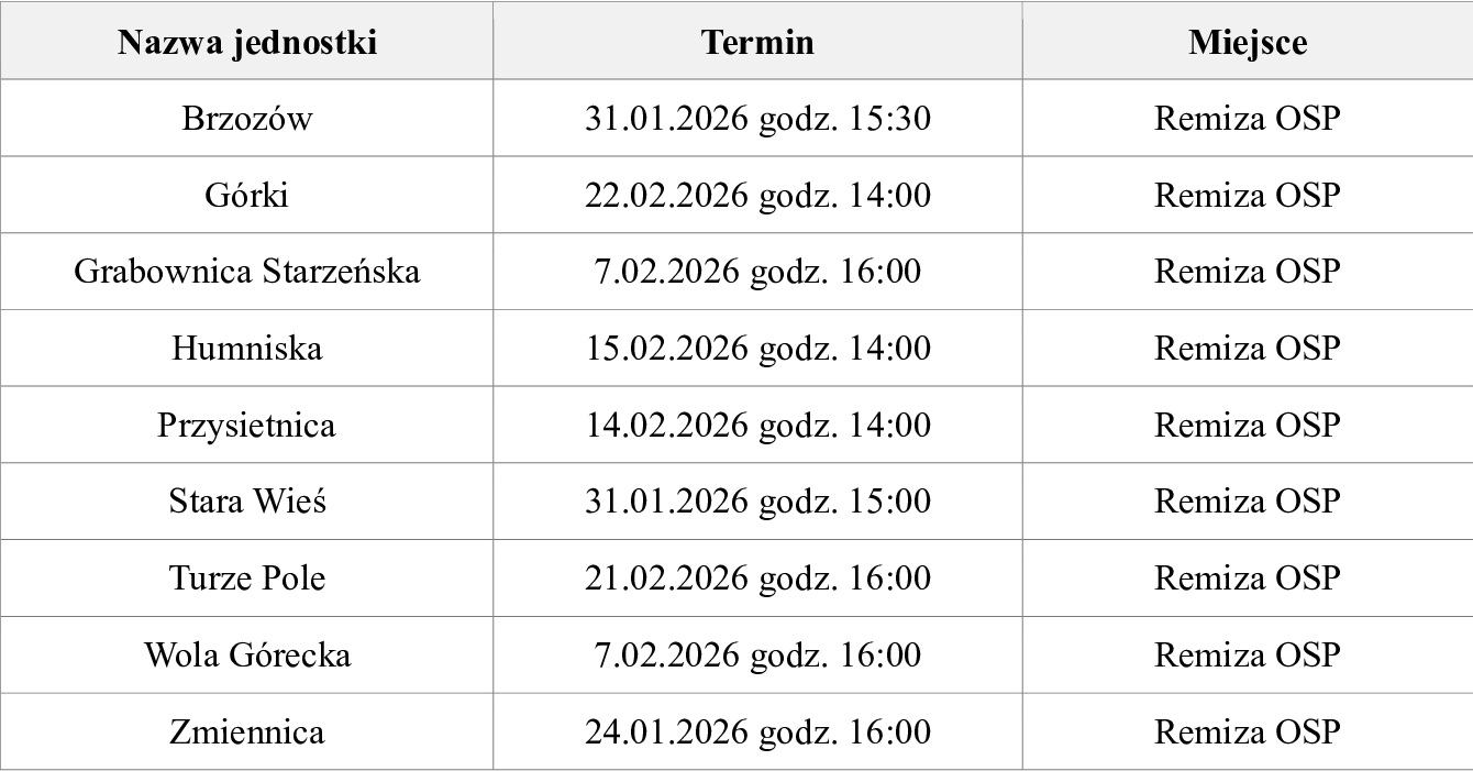 Wykaz walnych zebrań członków jednostek OSP z gminy Brzozów ROK 2026