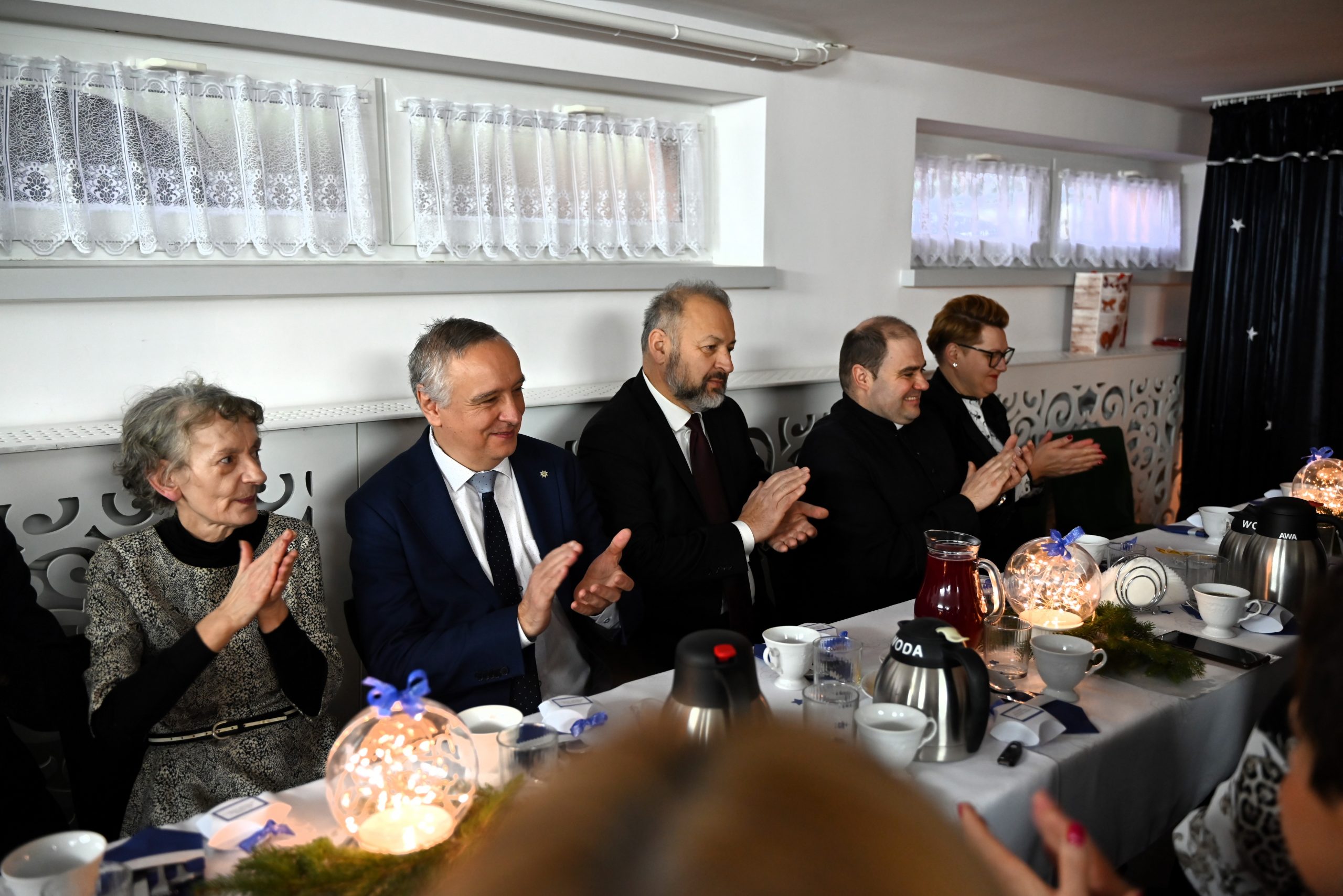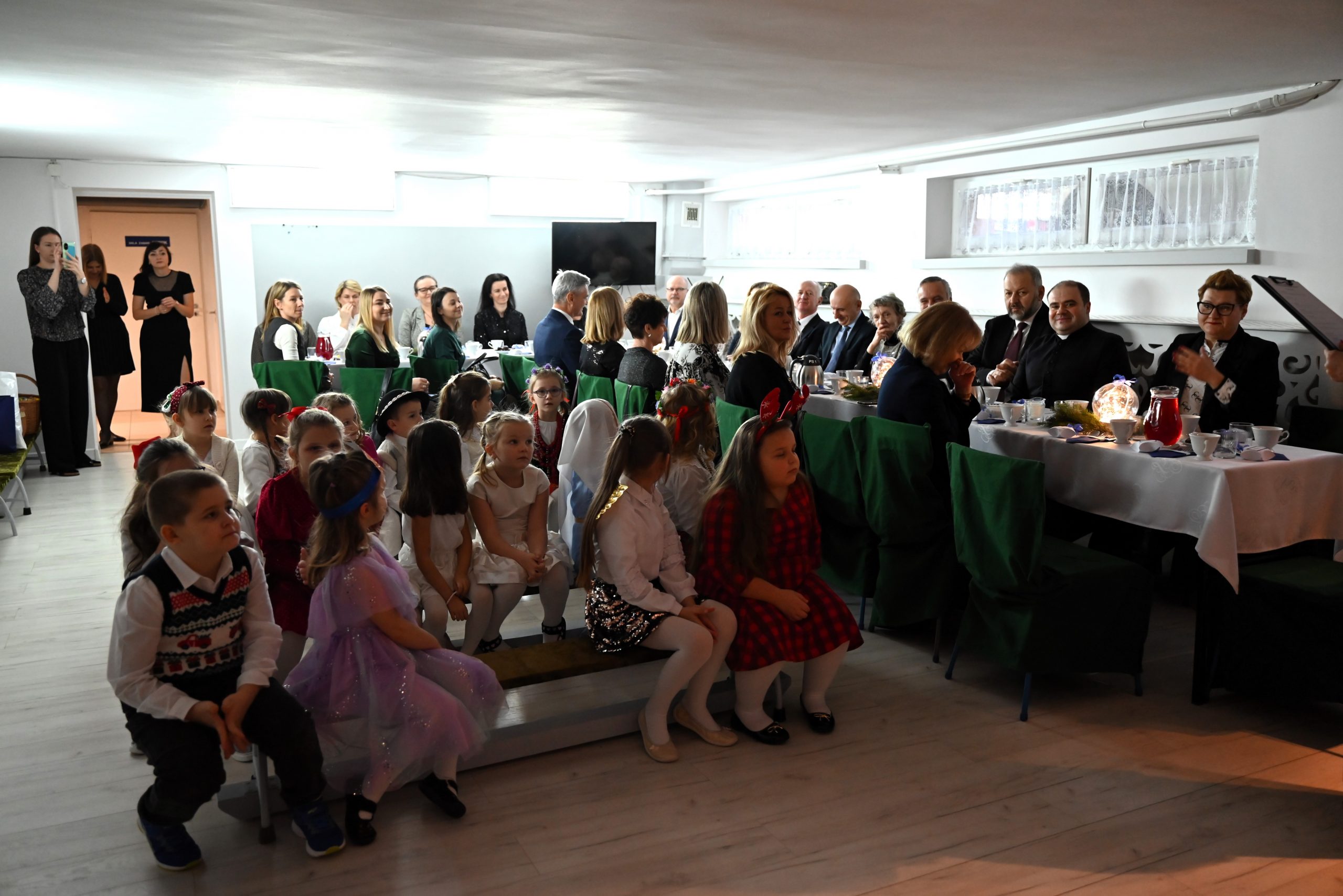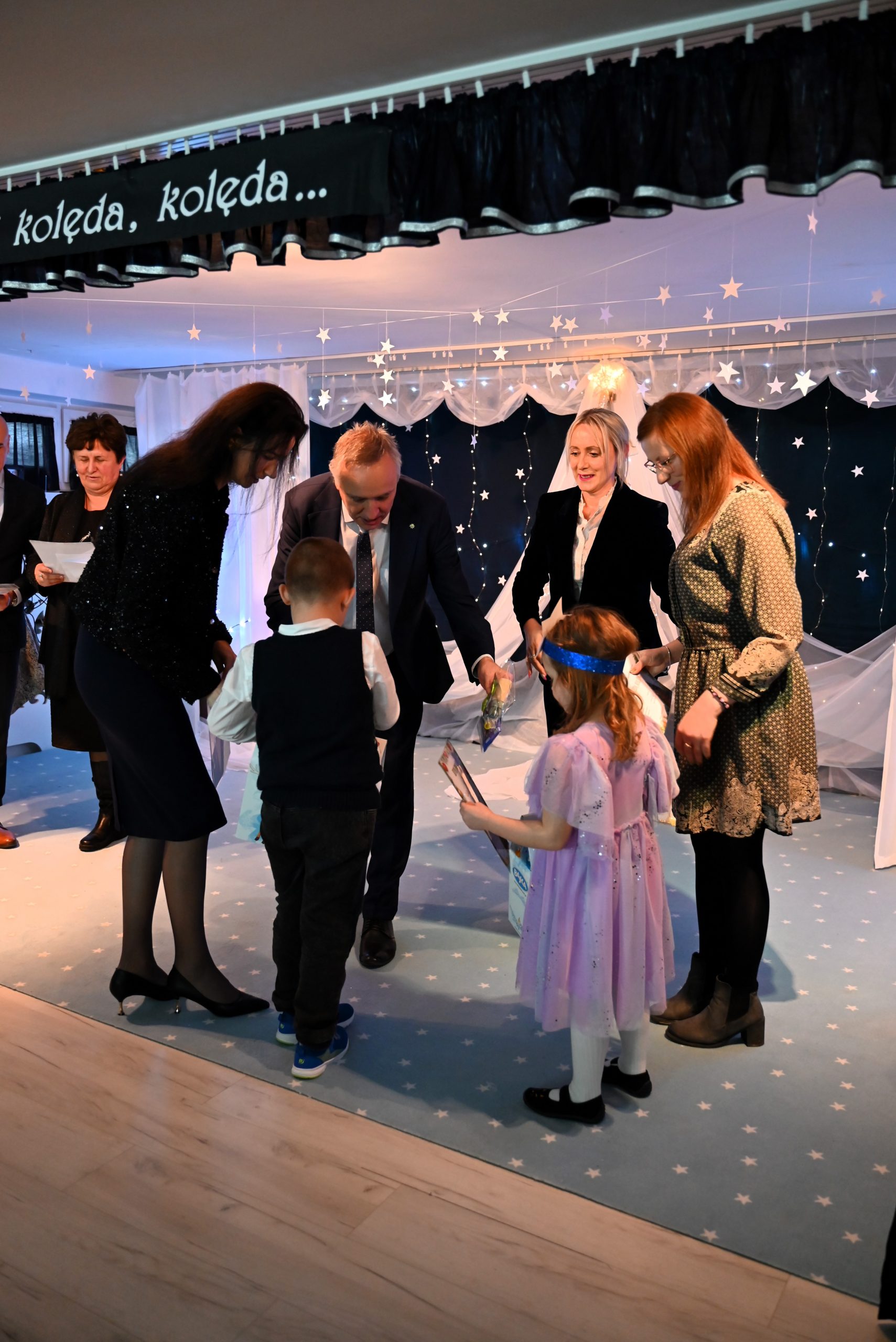 W przeglądzie wzięli udział również zaproszeni goście: zastępca Burmistrza Brzozowa Mariusz Bieńczak, przewodnicząca Komisji Kultury, Oświaty, Sportu, Turystyki i Wypoczynku Rady Miejskiej w Brzozowie Mariola Pilszak, Radny RM w Brzozowie Andrzej Łach, starszy wizytator Kuratorium Oświaty w Rzeszowie Barbara Dżugan, dyrektor Poradni Psychologiczno-Pedagogicznej w Brzozowie Marta Śmigiel, zastępca dyrektora Muzeum Regionalnego im. Adama Fastnachta w Brzozowie Agnieszka Adamska, dyrektor ZEAS w Brzozowie Józef Baran, wikariusz Parafii w Brzozowie ks. Mateusz Berdechowski, właściciel Dziennego Domu Pobytu w Brzozowie Zbigniew Leń, zastępca Rady Rodziców Katarzyna Ścibor oraz dyrektorzy i nauczyciele przedszkoli, biorących udział w przeglądzie. Przegląd otworzyła dyrektor przedszkola Anna Szajnowska-Jajko, a po niej wystąpiły dzieci z grupy Motylków i Sportowców, wprowadzając zebranych w iście świąteczny nastrój.