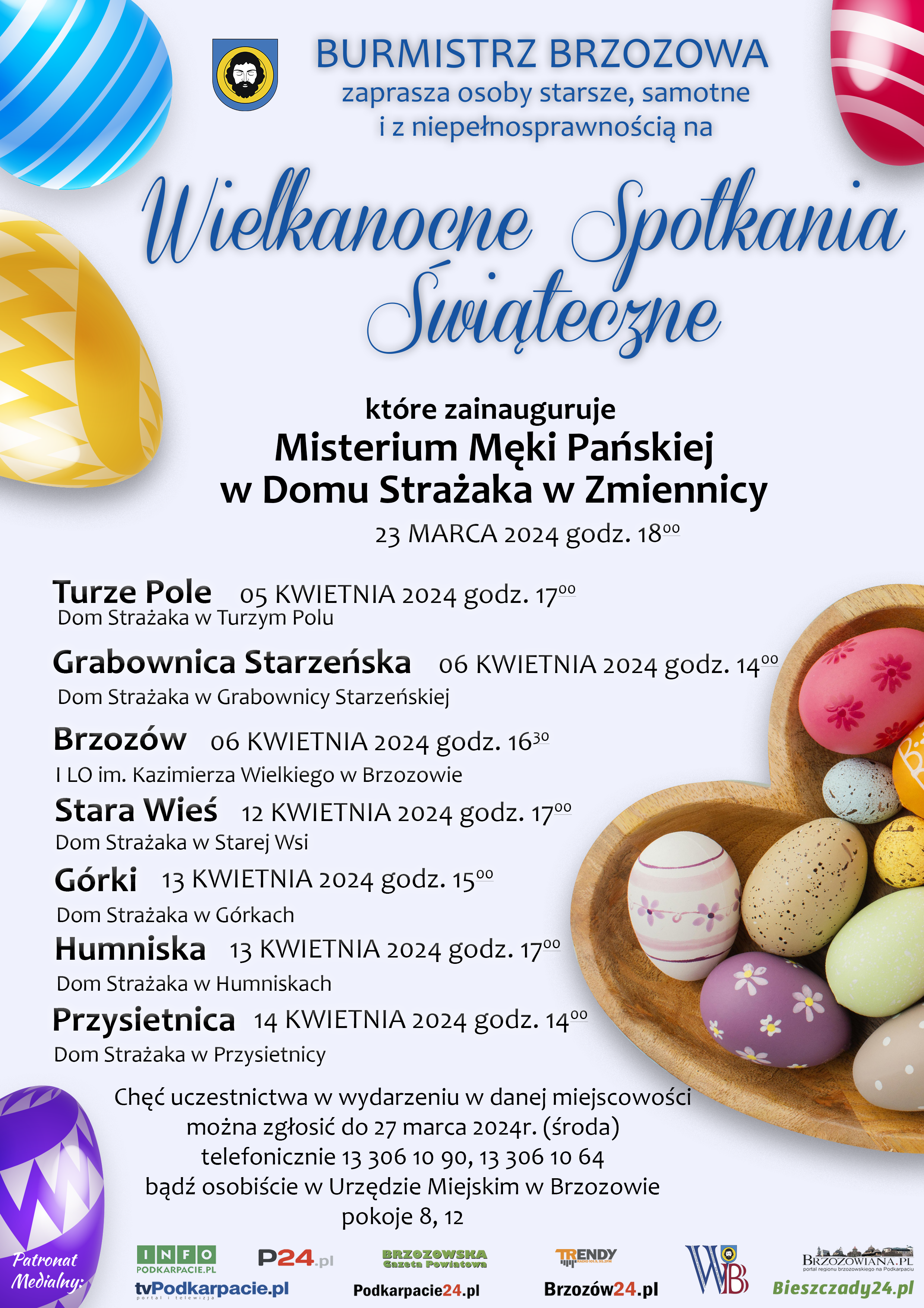 W związku ze zbliżającym się okresem świątecznym, Burmistrz Brzozowa już po raz kolejny zaprasza wszystkich mieszkańców, a szczególnie osoby starsze, samotne i z niepełnosprawnością do wspólnych spotkań przy wielkanocnym stole.