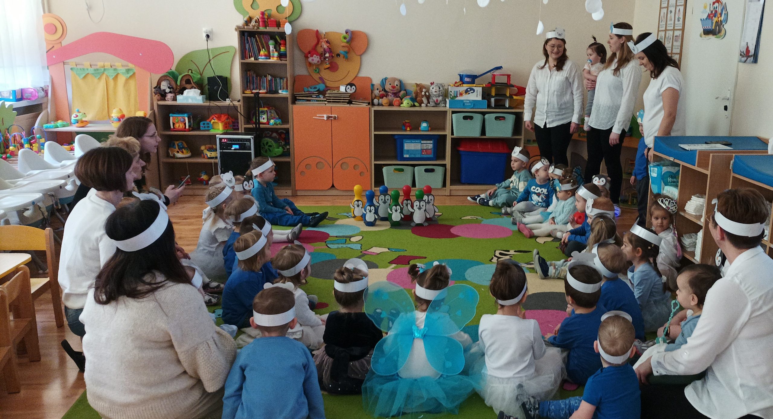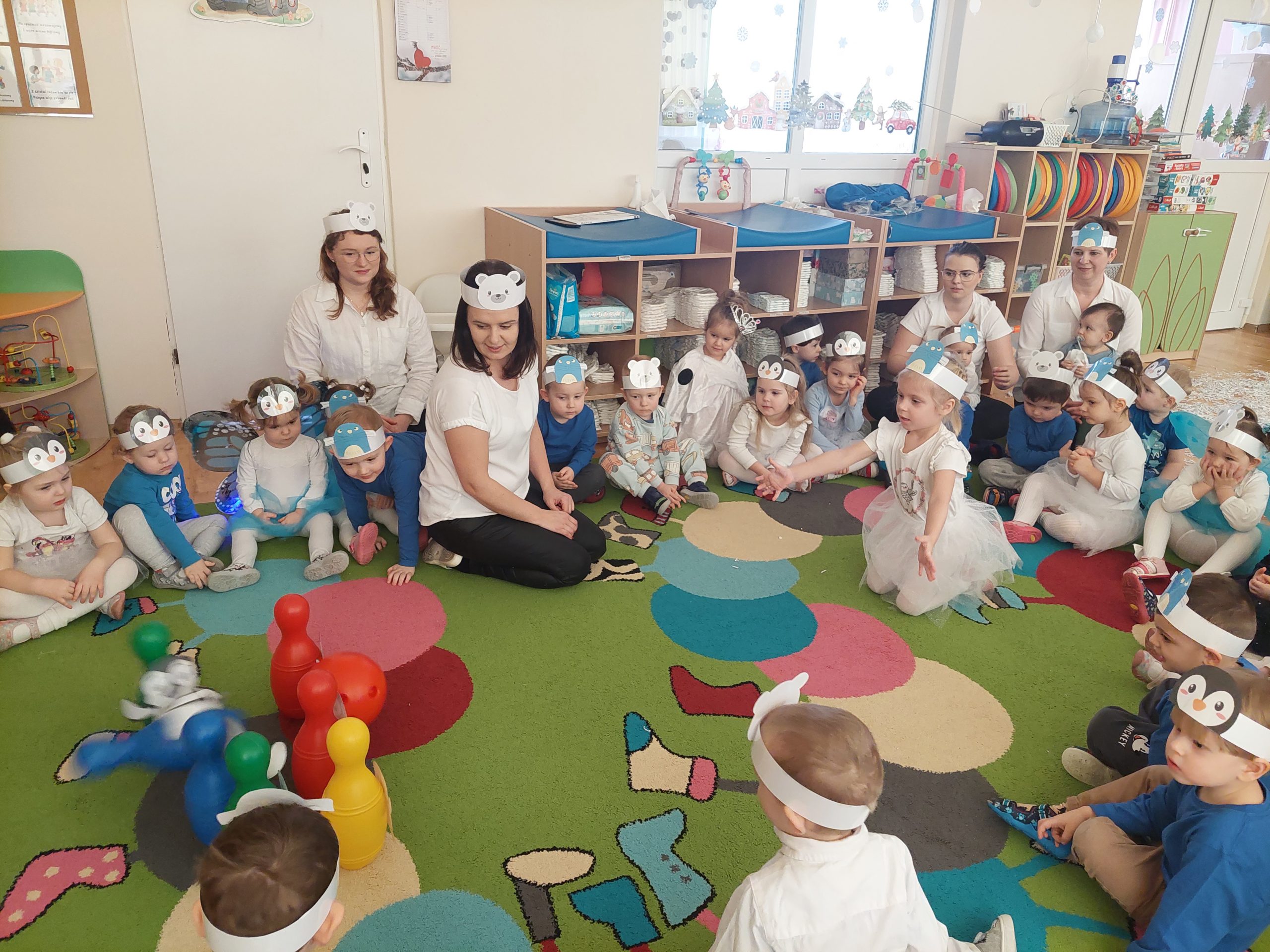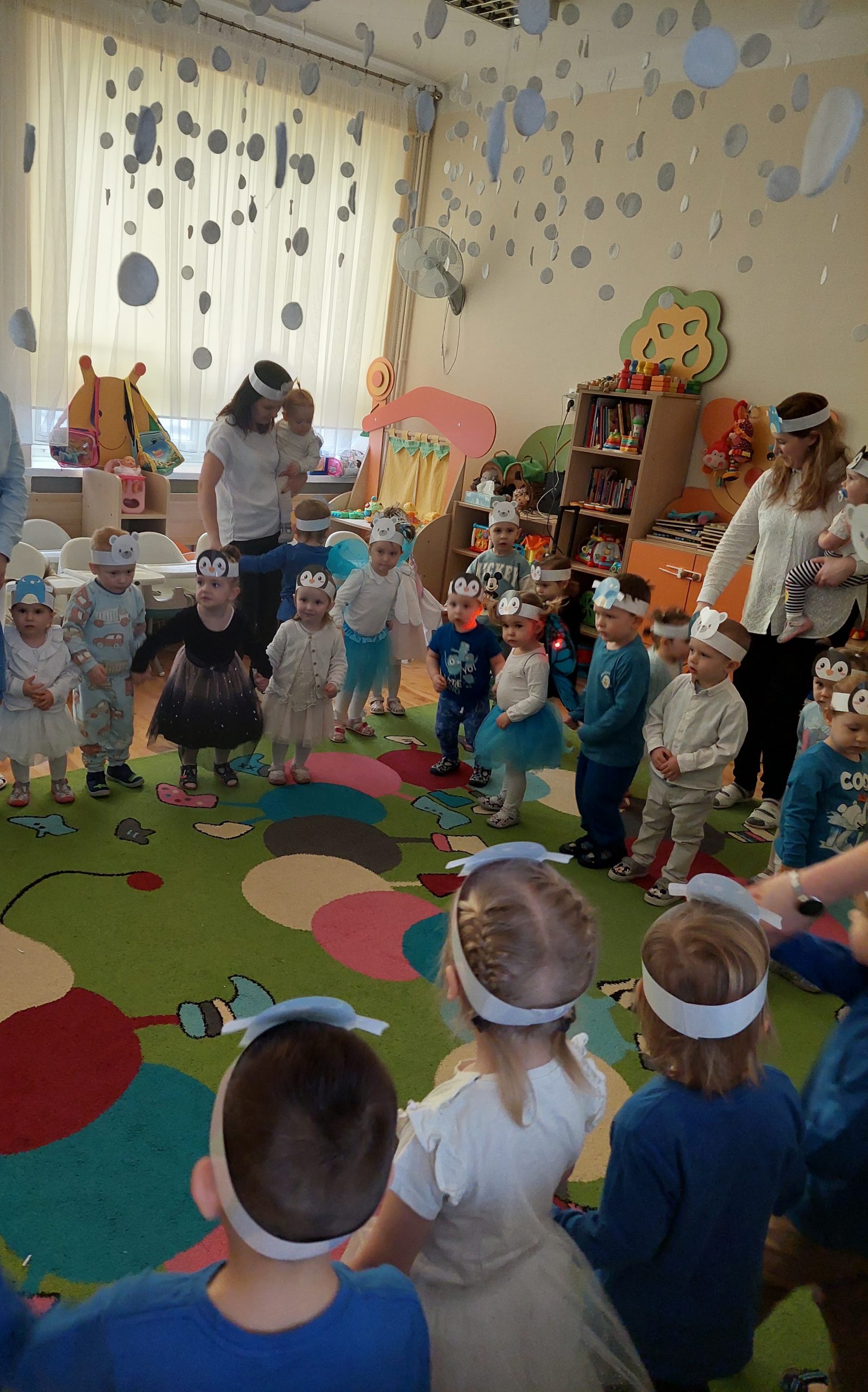 Żłobek w tym dniu odwiedziły dzieci z grupy Krasnale z Przedszkola Samorządowego nr 1 w Brzozowie , do której uczęszczają m.in. absolwenci ze Żłobka. W ramach wprowadzenia w tematykę zimową dzieci wysłuchały bajki pt. „Wilk który się zgubił”. Zimowy wystrój sali wprowadził wszystkich w radosny nastrój oraz zachęcił do wesołej zabawy.