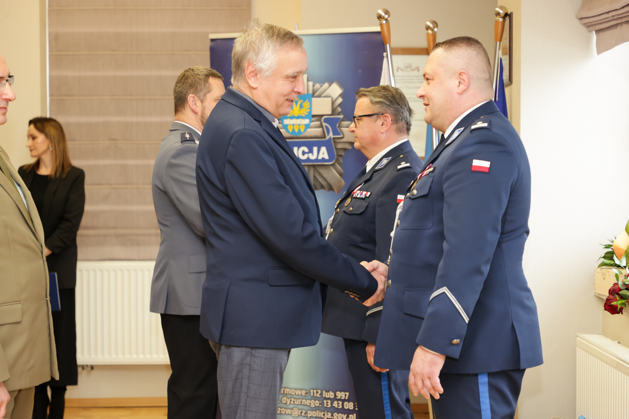 W uroczystości uczestniczyli także m.in. przedstawiciele lokalnych władz samorządowych, służb i instytucji oraz kadra kierownicza i pracownicy Komendy Powiatowej Policji w Brzozowie.