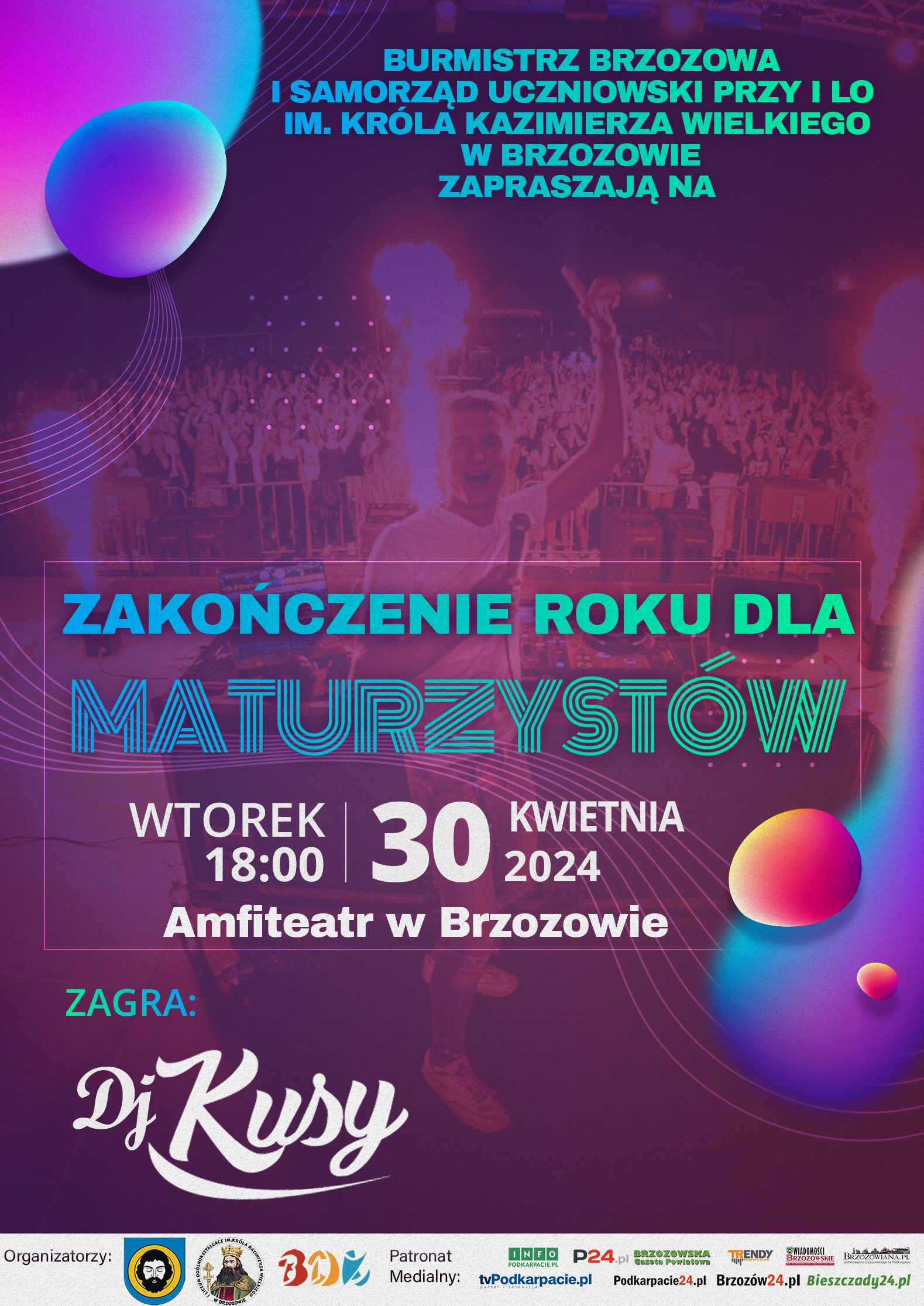 22.04.2024 Zmiana terminu imprezy Uwaga Maturzyści! Do trzech razy sztuka! Z uwagi na warunki pogodowe, imprezę na 𝙕𝙖𝙠𝙤𝙣́𝙘𝙯𝙚𝙣𝙞𝙚 𝙧𝙤𝙠𝙪 𝙙𝙡𝙖 𝙈𝙖𝙩𝙪𝙧𝙯𝙮𝙨𝙩𝙤́𝙬 przenosimy na 30 kwietnia br. Zagra DJ Kusy, zaś strefę gastronomiczną zapewni Bar Retro.