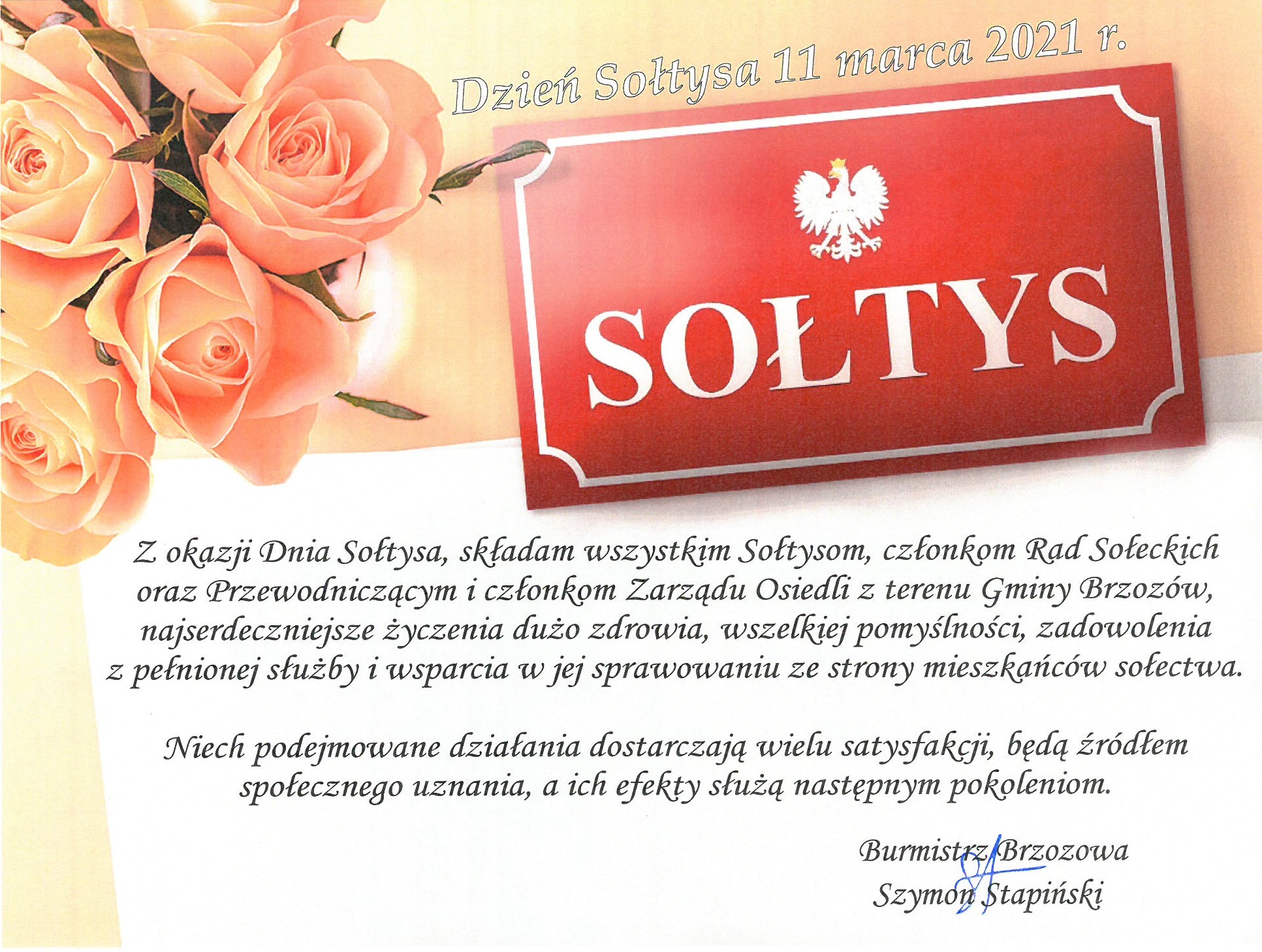 Życzenia Burmistrza Brzozowa z okazji Dnia Sołtysa